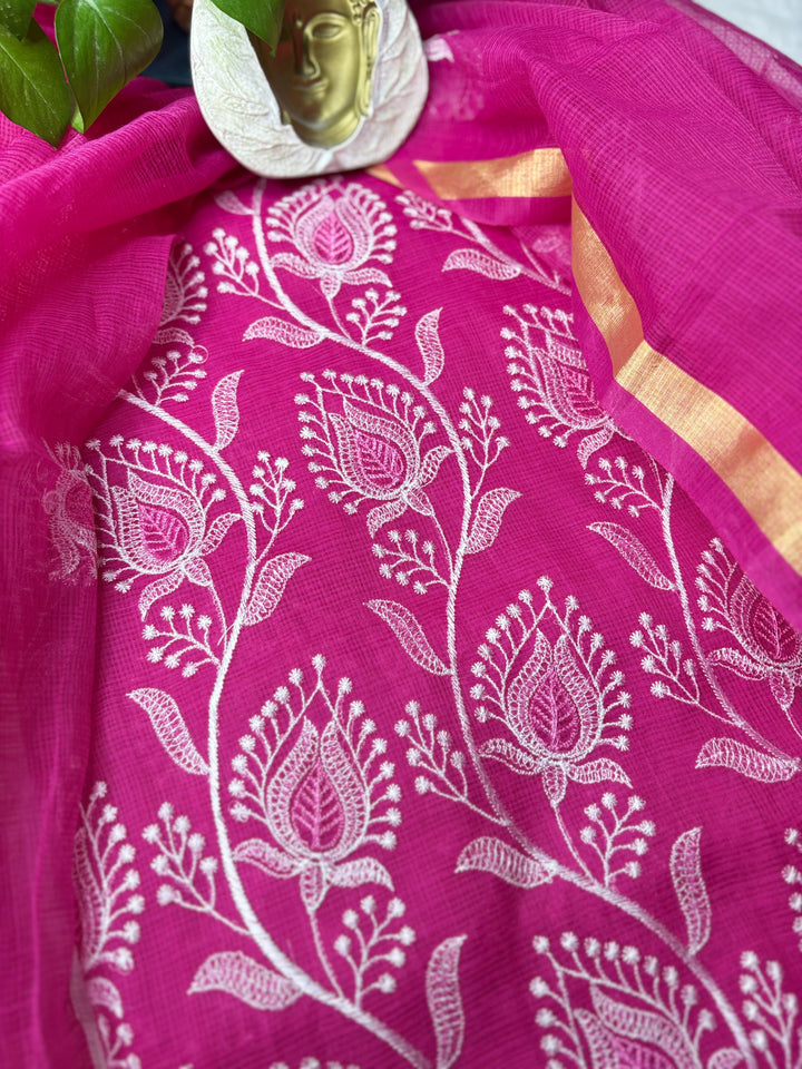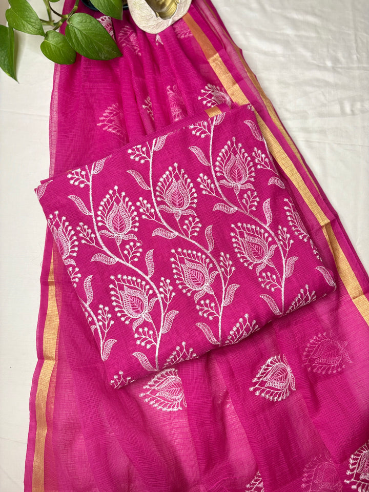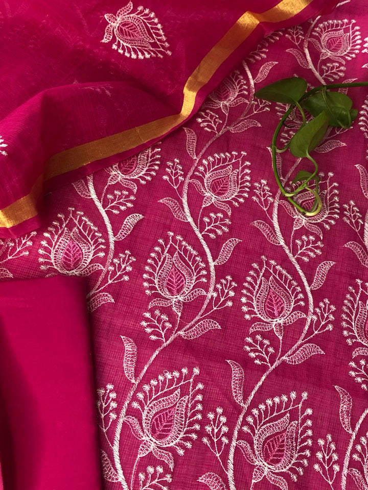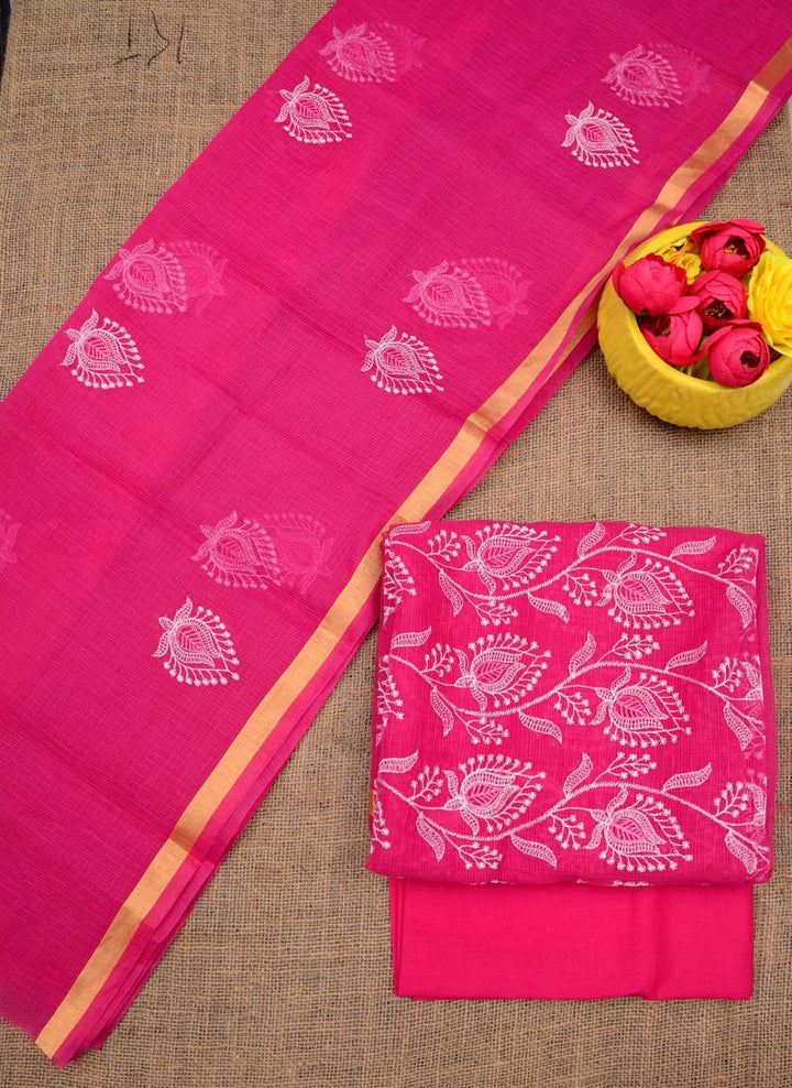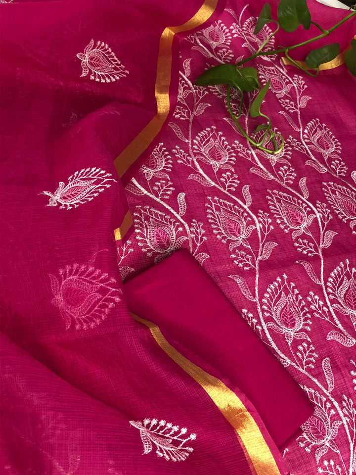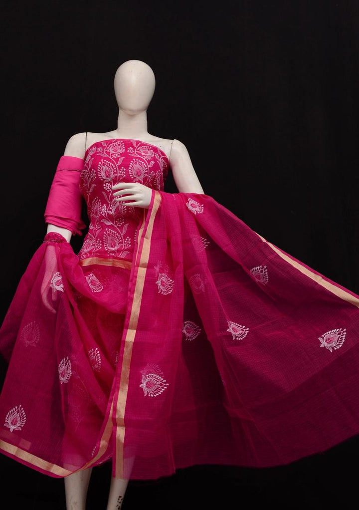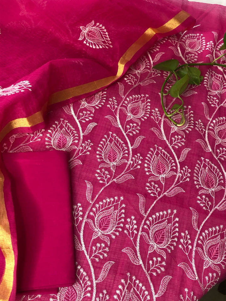 Rajyalakshmi- Kota Doriya Embroidery Work Suit In Rani pink