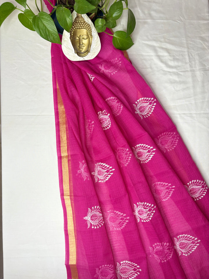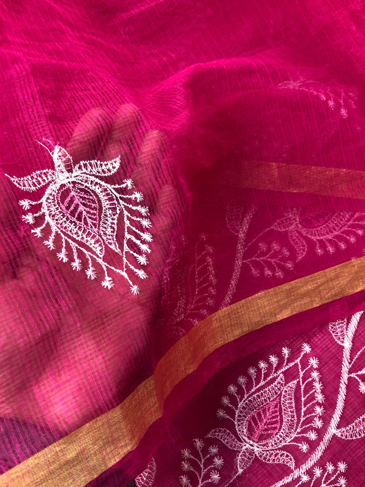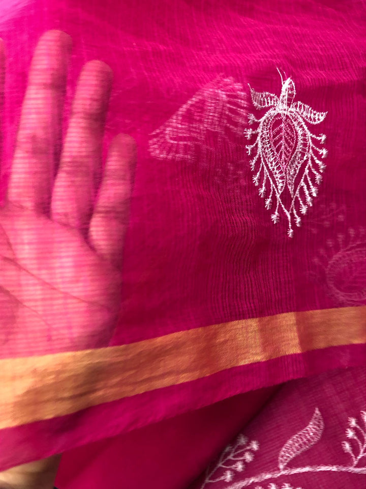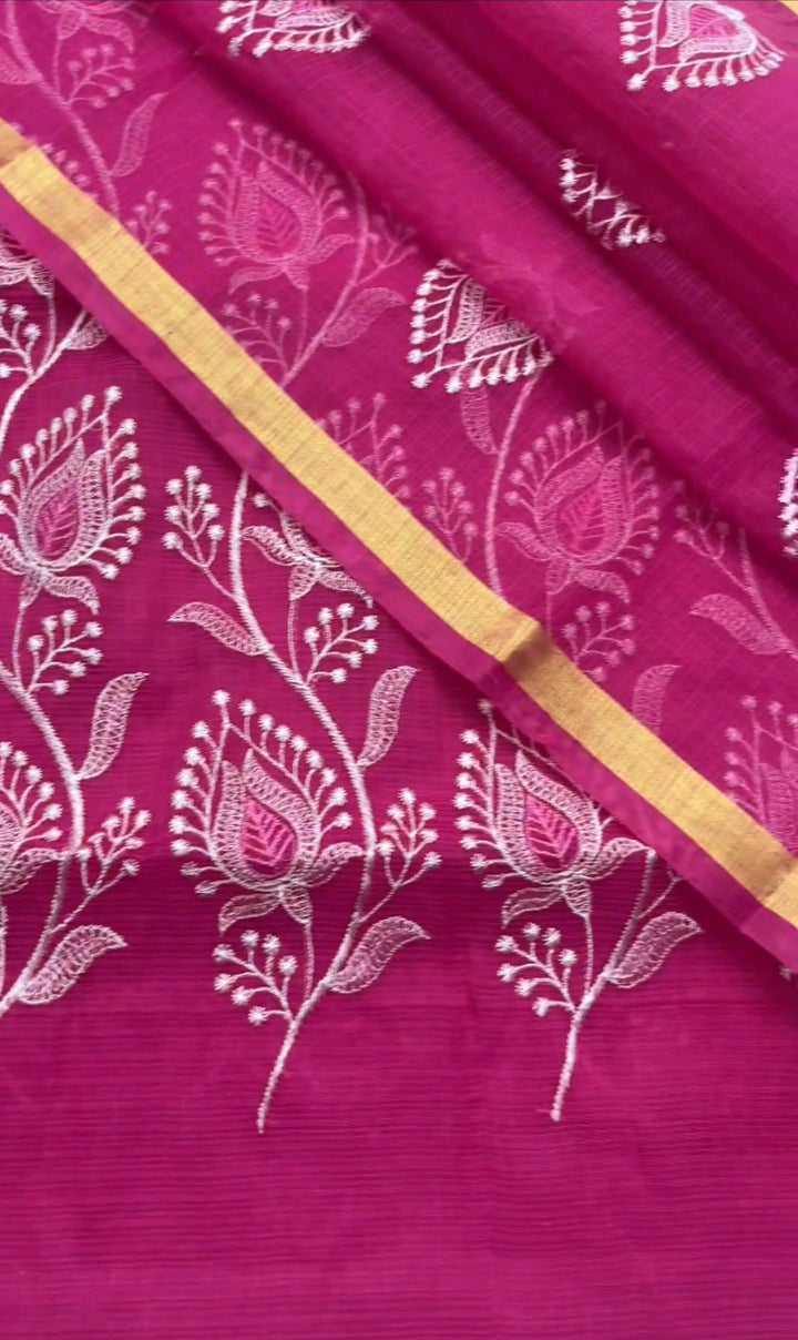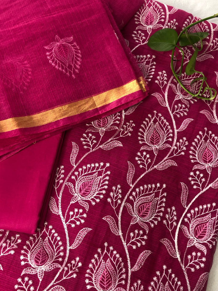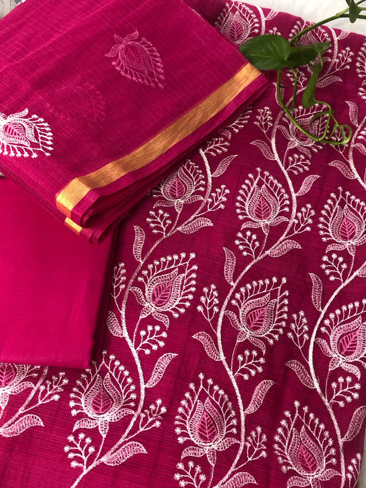 Rajyalakshmi- Kota Doriya Embroidery Work Suit In Rani pink