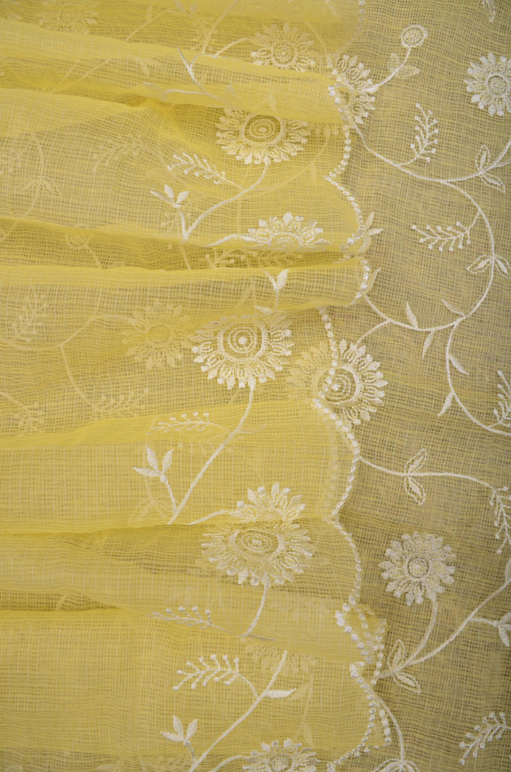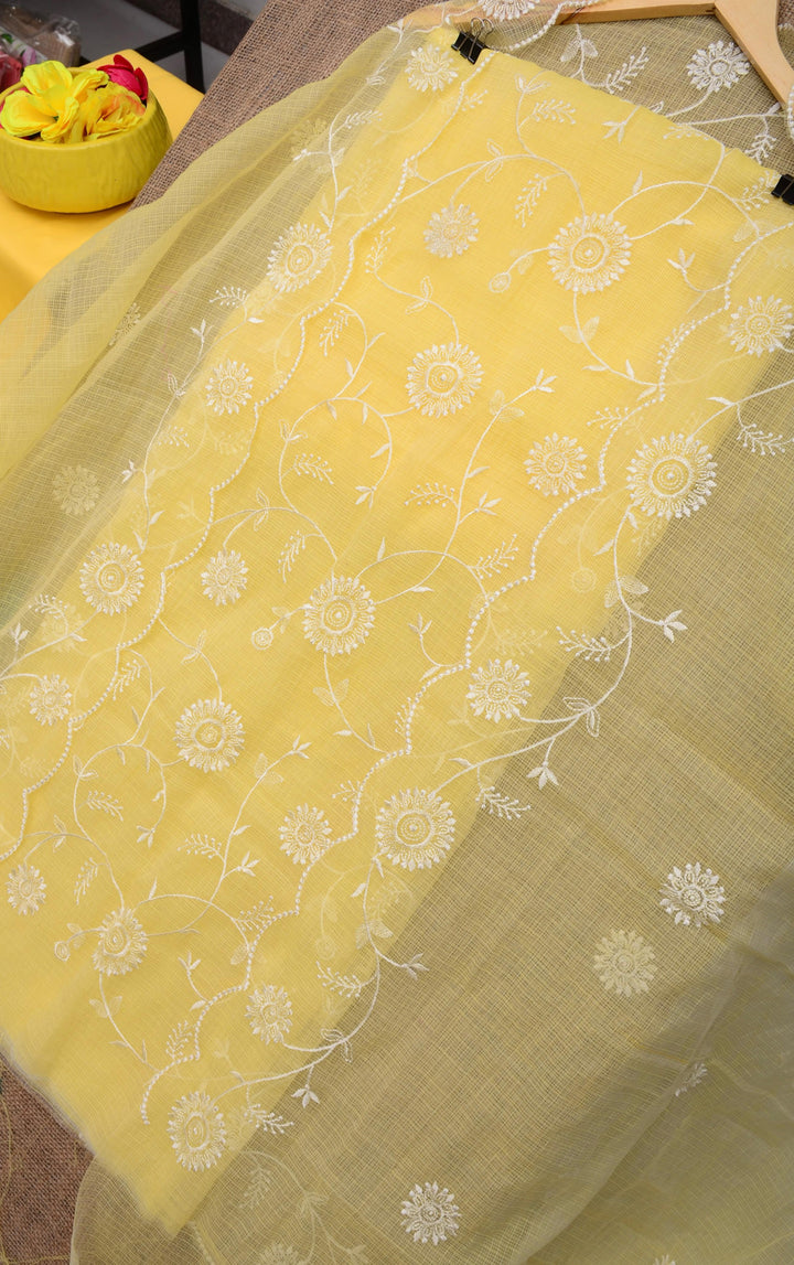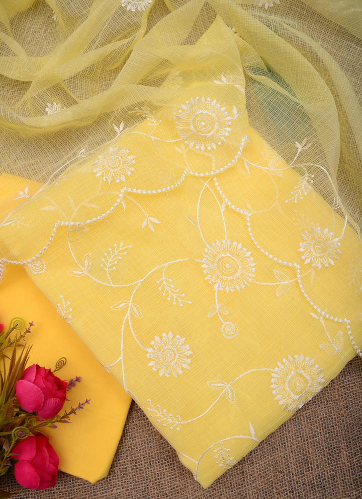Tara- Beautiful Kota Doriya Embridery Work Suit In Yellow. This Traditional Suits 2.5 Mtr Top In Kota ,2.5 Mtr Dupatta In Kota,2.5 Mtr Bottom In Cotton, Wear This Kota Doria Suit With Kundan Necklace And Jhumkas On Day Time Function, This Designer Suit Comes With Beautiful Dupatta That Seems Perfect For Any Occasion,Free Shipping And Cod Available, Shipping Worldwide.