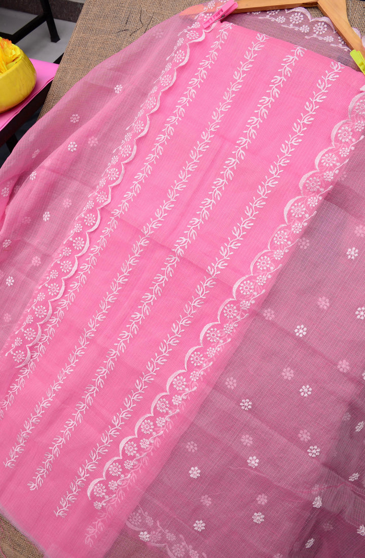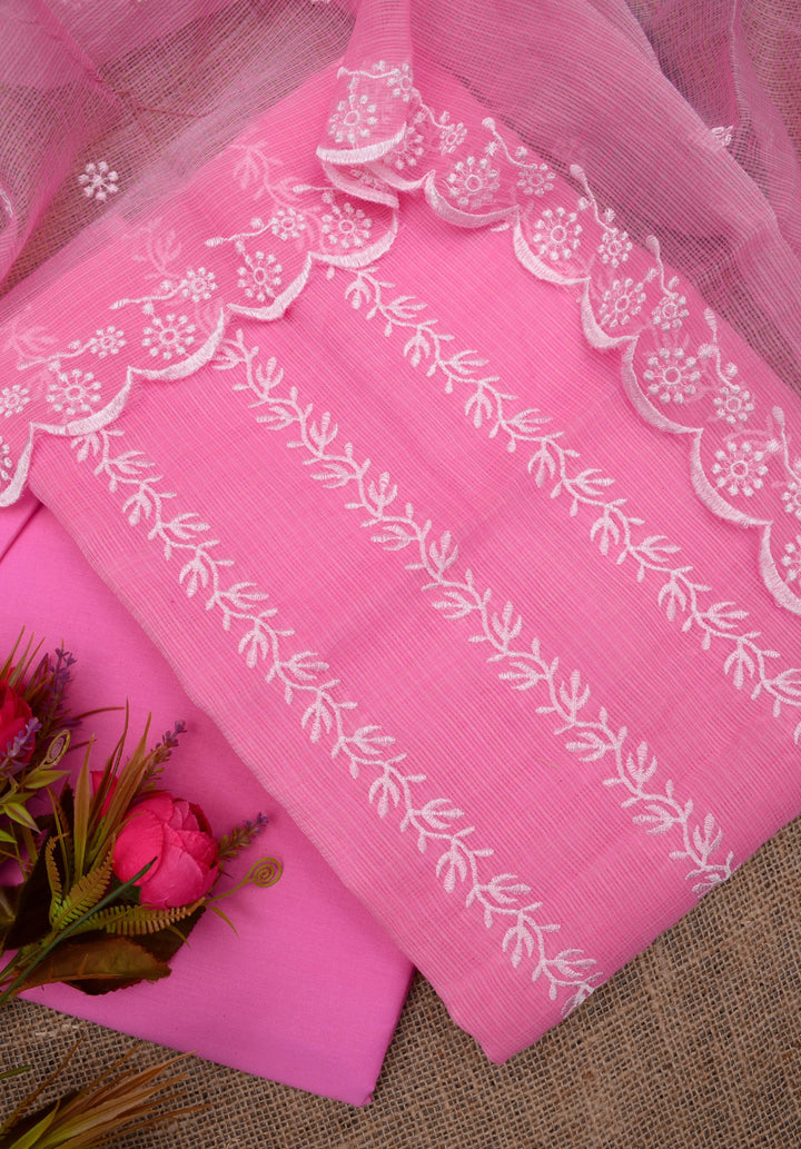 Apsara- Beautiful Kota Doriya Embridery Work Suit In pink. This Traditional Suits 2.5 Mtr Top In Kota ,2.5 Mtr Dupatta In Kota,2.5 Mtr Bottom In Cotton, Wear This Kota Doria Suit With Kundan Necklace And Jhumkas On Day Time Function, This Designer Suit Comes With Beautiful Dupatta That Seems Perfect For Any Occasion,Free Shipping And Cod Available, Shipping Worldwide.