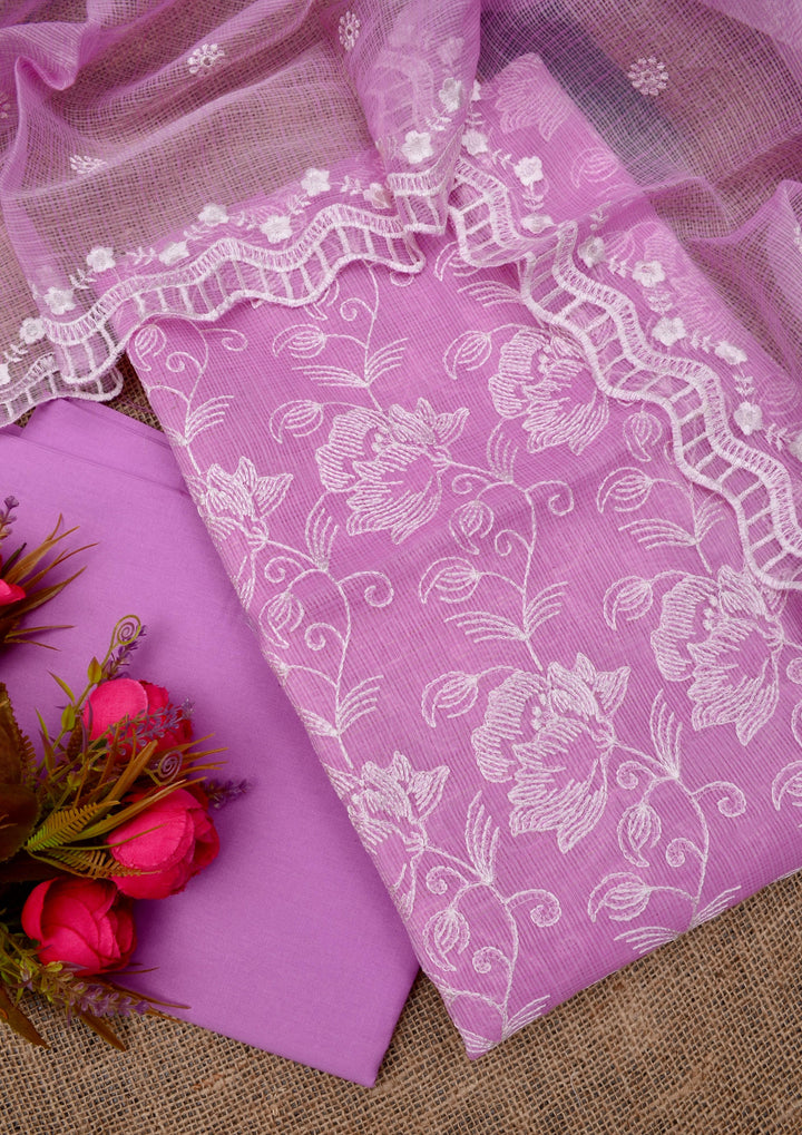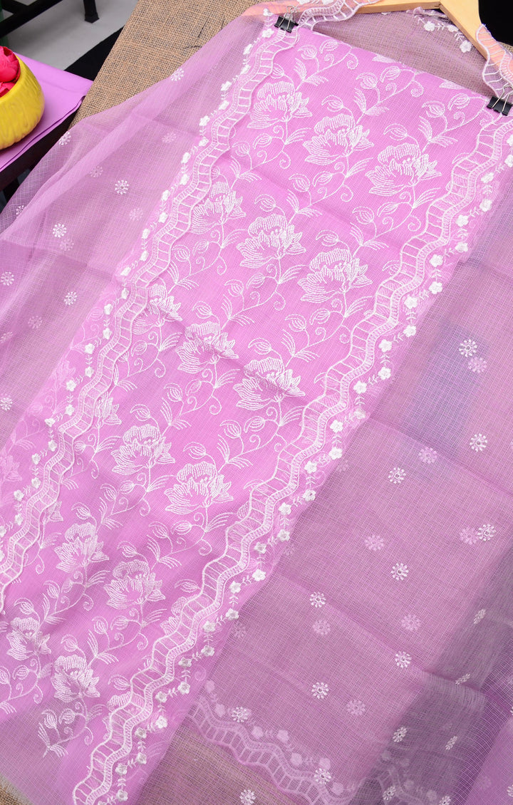 Shachi- Beautiful Kota Doriya Embridery Work Suit In Lavender colour. This Traditional Suits 2.5 Mtr Top In Kota ,2.5 Mtr Dupatta In Kota,2.5 Mtr Bottom In Cotton, Wear This Kota Doria Suit With Kundan Necklace And Jhumkas On Day Time Function, This Designer Suit Comes With Beautiful Dupatta That Seems Perfect For Any Occasion,Free Shipping And Cod Available, Shipping Worldwide.