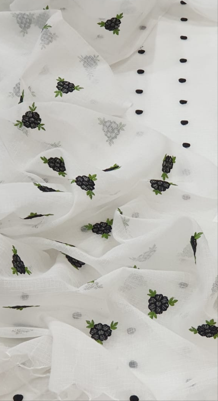 Kota Doriya Embroidery Work Suit In white Colour with green dotted touch (unstitched)