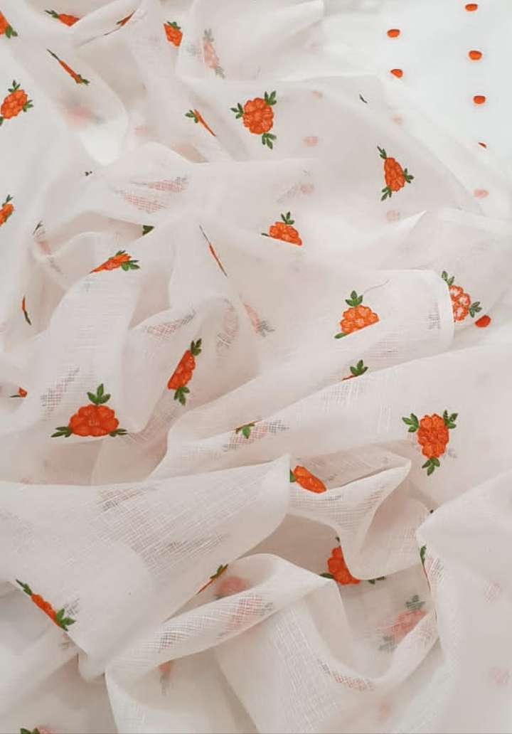 Kota Doriya Embroidery Work Suit In white Colour with orange dotted touch (unstitched)