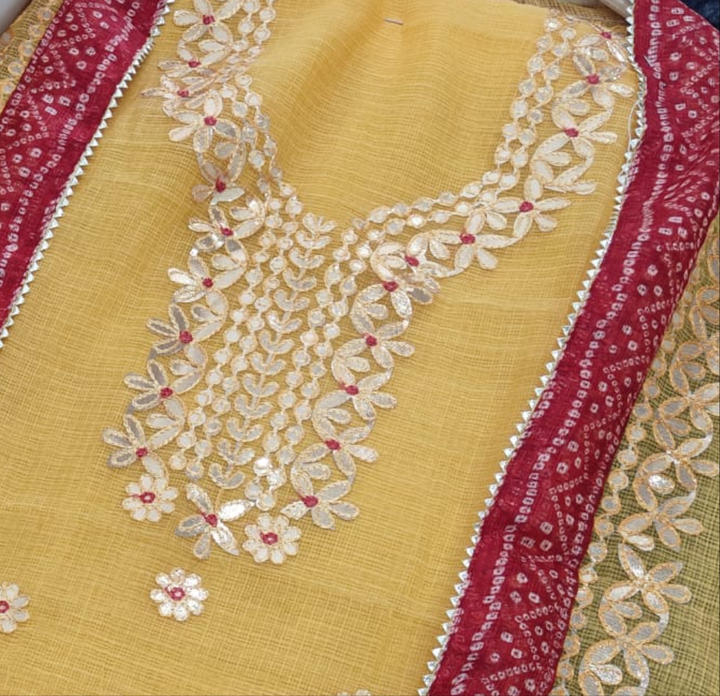 Fabric - Cotton Kota (3 PIECES SUIT 2.5 MTR TOP In Kota ,2.5 MTR Dupatta In Kota,2.5 MTR Bottom In Cotton)