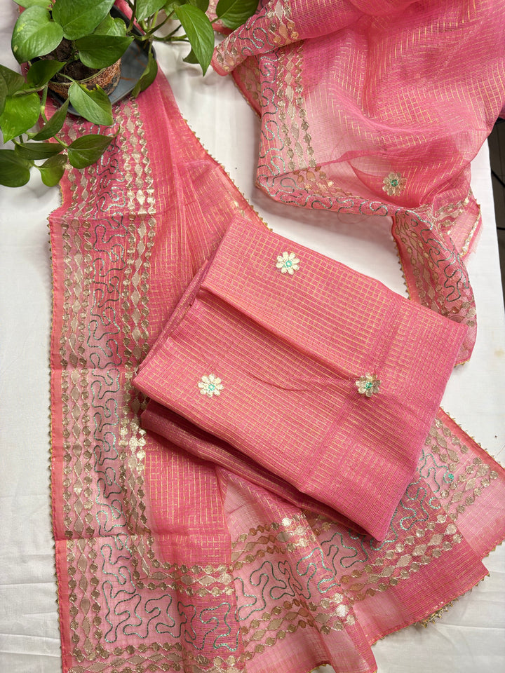 This Traditional Suits 2.5 Mtr Top In Kota ,2.5 Mtr Dupatta In Kota,2.5 Mtr Bottom In Cotton, Wear This Kota Doria Suit With Kundan Necklace And Jhumkas On Day Time Function, This Designer Suit Comes With Beautiful Dupatta That Seems Perfect For Any Occasion,Free Shipping And Cod Available, Shipping Worldwide.