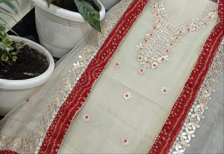 Meenakshi- Kota Salwar Suit In Gota Work In White (unstitched)
