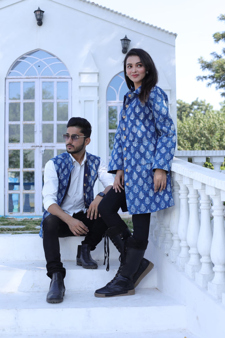 Blue Color Twinning Couple Pure Cotton Bagru Print Quilted Reversible Jackets Sale price₹1,899.00 INR