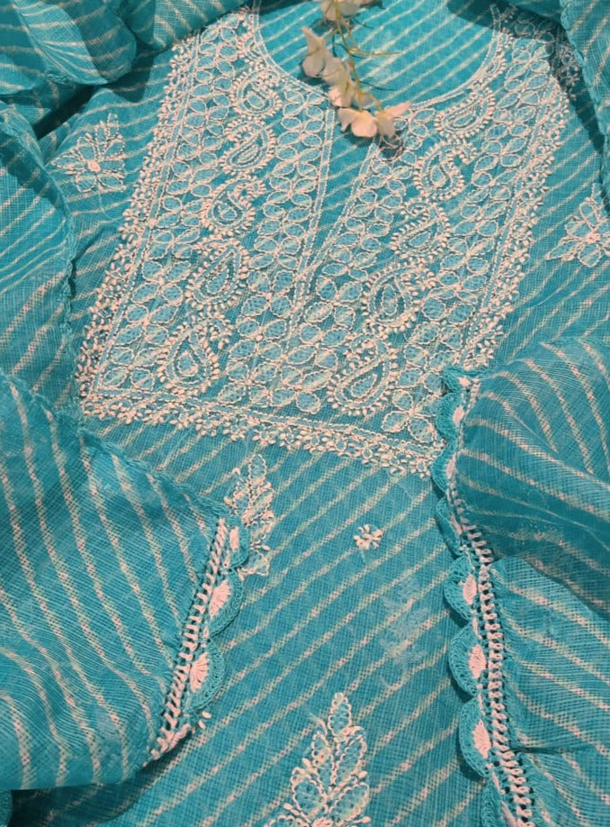 - Designer Light Blue Kota Silk Chikankari Salwar Kameez Set Unstitched Dress Material