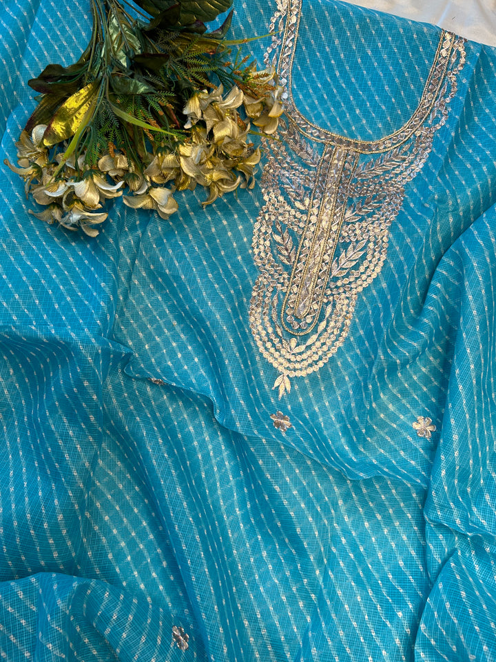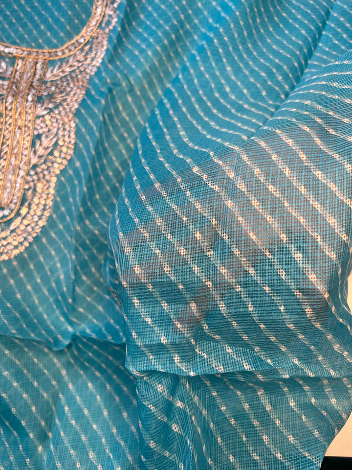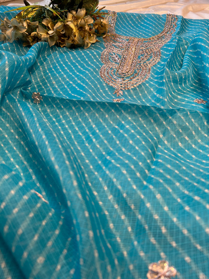 Light Blue Kota Doriya Leheriya Kurtithis Pure Organza Kurti Comes With 2.5 Meter With Beautiful Handwork As Shown In Picture.This Is A Designer Handwork Kurti.This Fancy Kurti Is Perfect For Any Festival.Shop This Pure Organza Kurti, Party Wear Kurti Online, Free Shipping And Cod Available, Shipping Worldwide.Shop This Traditional Earrings, Fancy Earrings, Party Wear Earrings Online, Free Shipping And Cod Available, Shipping Worldwide.