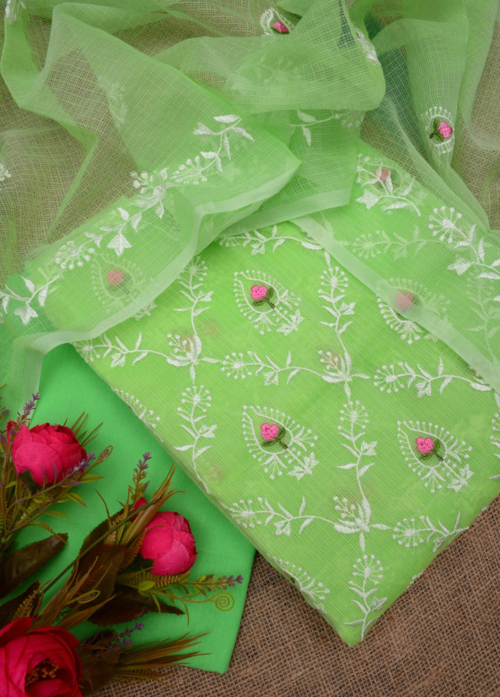MadhuMalti- Light Green Embroided Kota Doria Suit Fabric With Dupatta