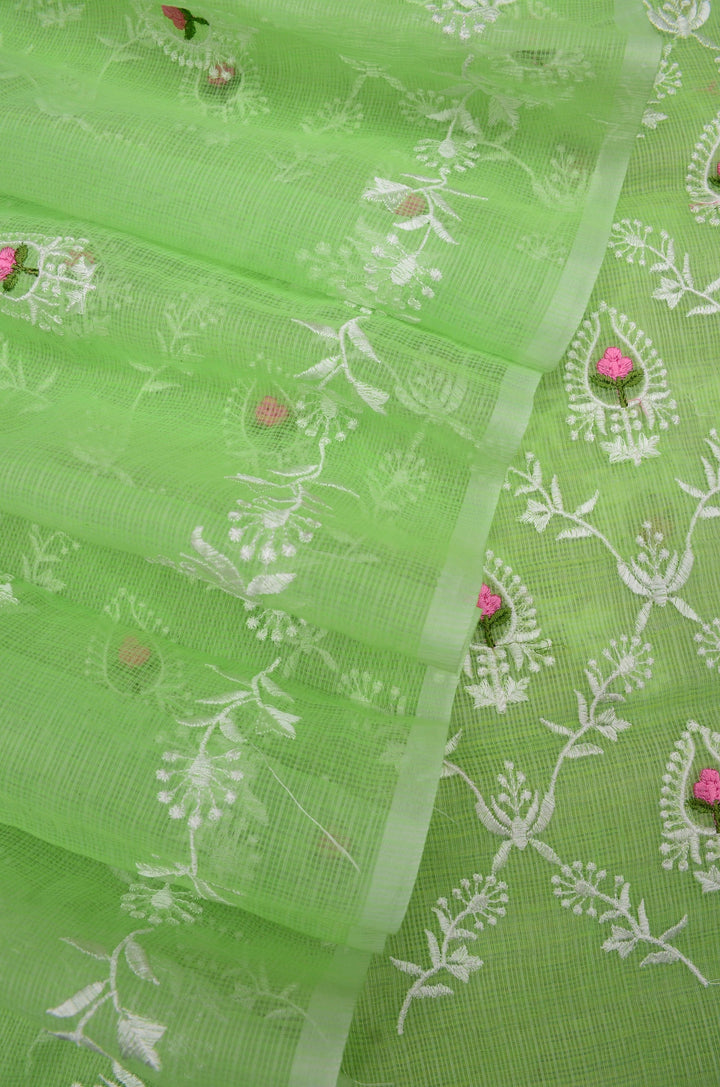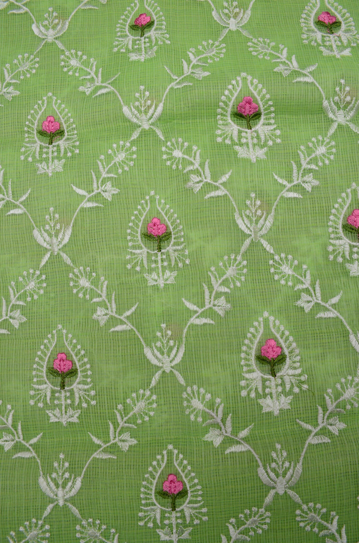 MadhuMalti- Light Green Embroided Kota Doria Suit Fabric With Dupatta (unstitched)