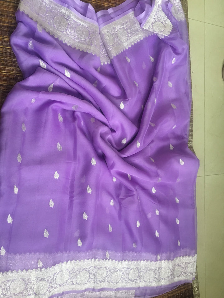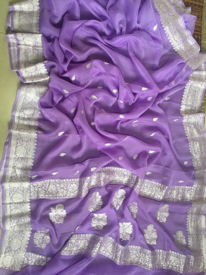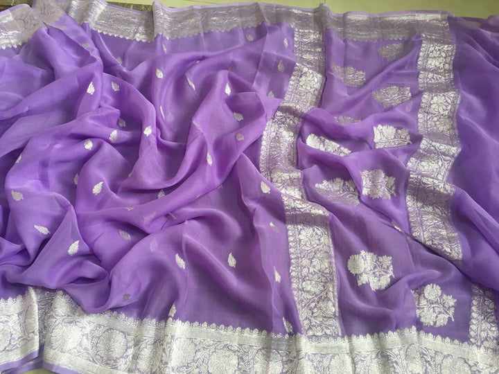 - Trending Lavender Purple Jaal Pure Banarasi Khaddi Georgette Saree
