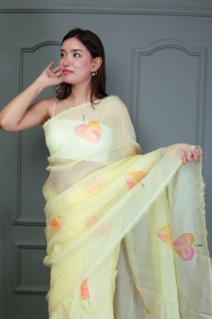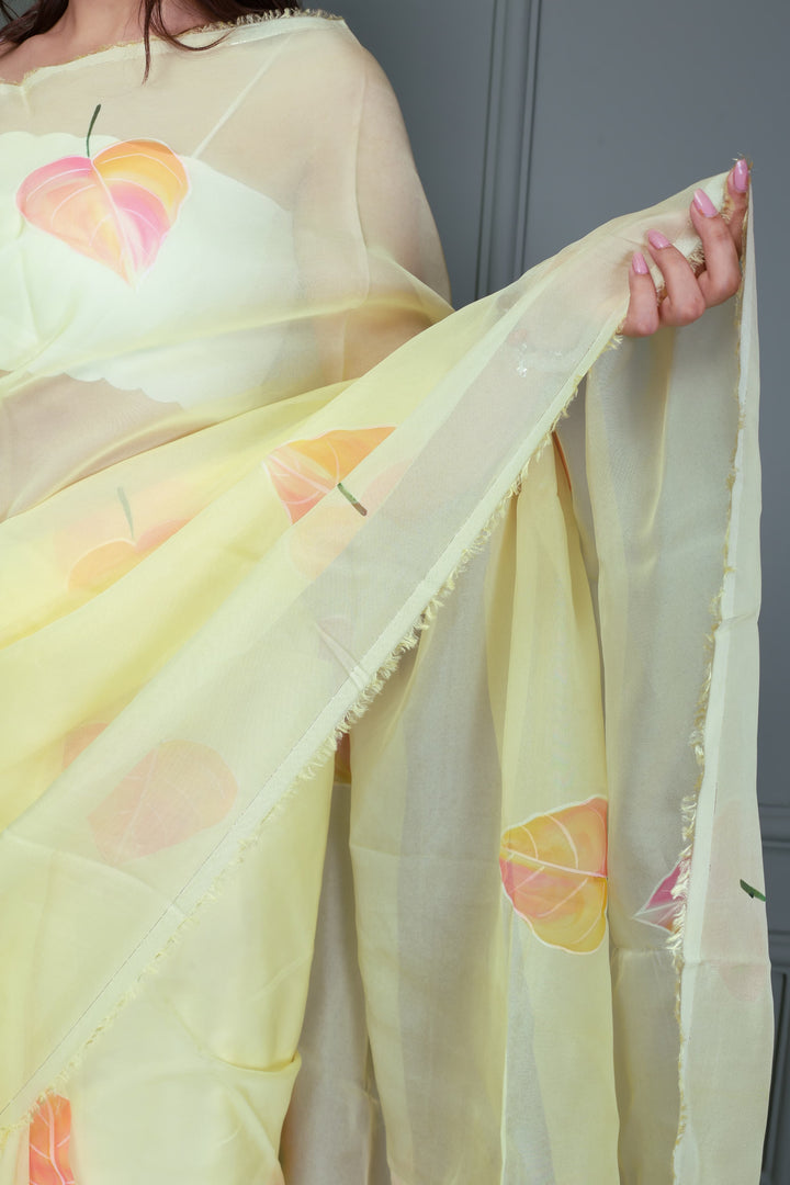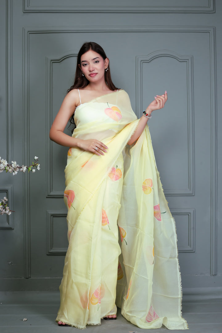 Shop now and experience the ethereal charm of Organza Hand painted Sarees - an exquisite blend of tradition and contemporary fashion!"