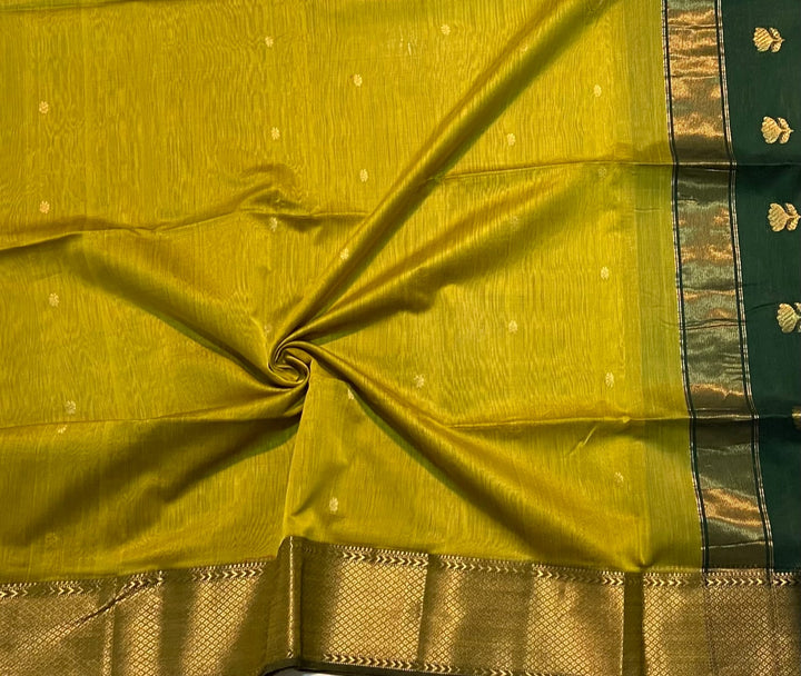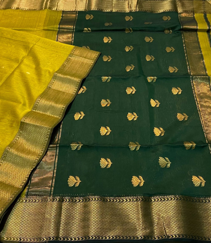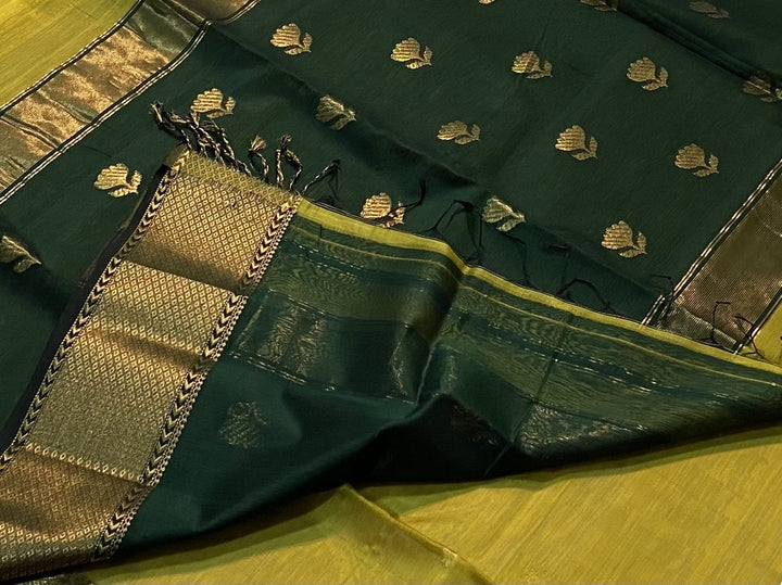 Maheshwari Silk Lotus buti saree Green