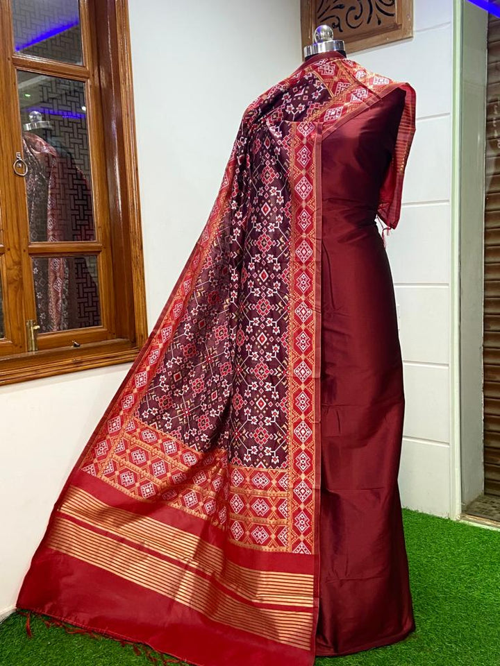 Allow the finish quality of silk to travel directly from the heart of Varanasi to your heart. Banarasi Silk Katan Suit Set has a 2.5 meters fabric of top and bottom and a 2.5 mtrs dupatta with jacquard weaving with zari all over it.