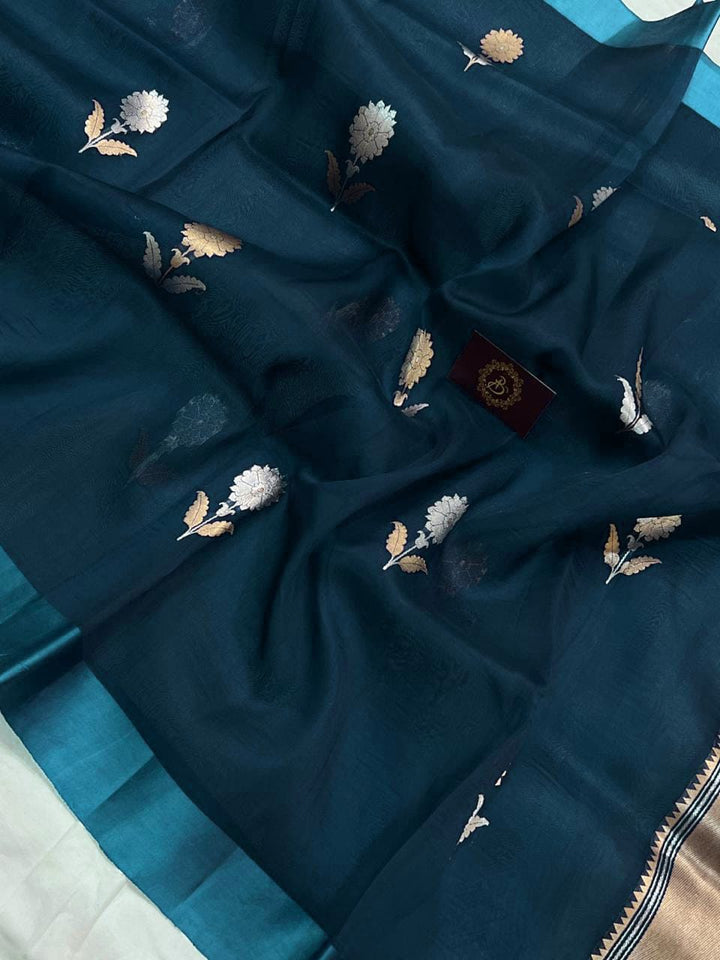 - Teal Blue Banarasi Semi-Georgette Soft Silk Saree