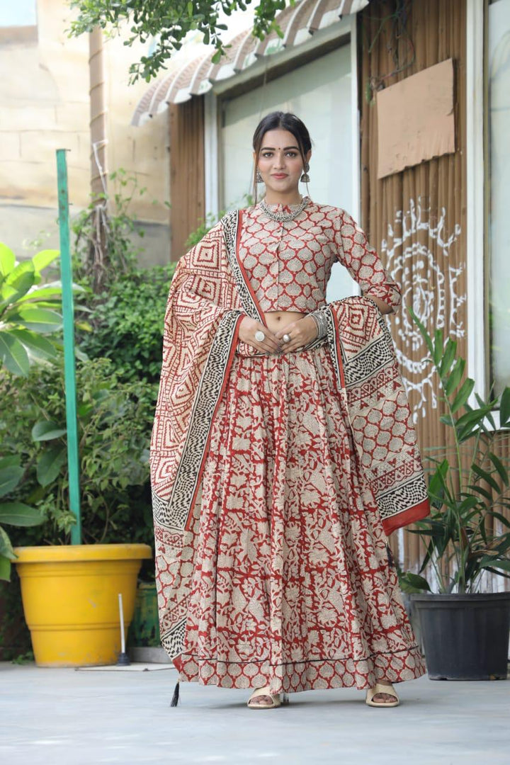 Red Bagru Print lehenga choli Set