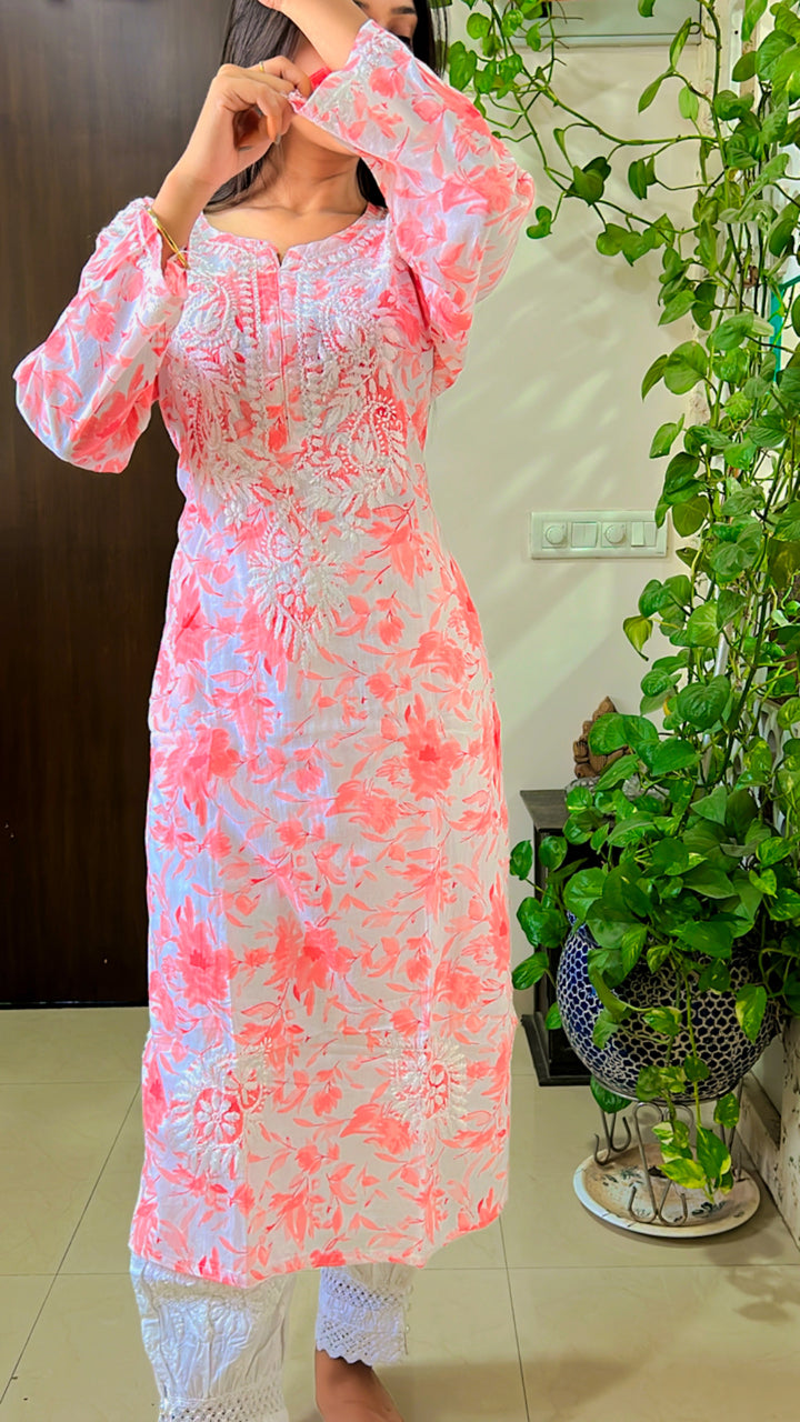 - Heavy chikan work on neckline and light chikankari on sleeve ends