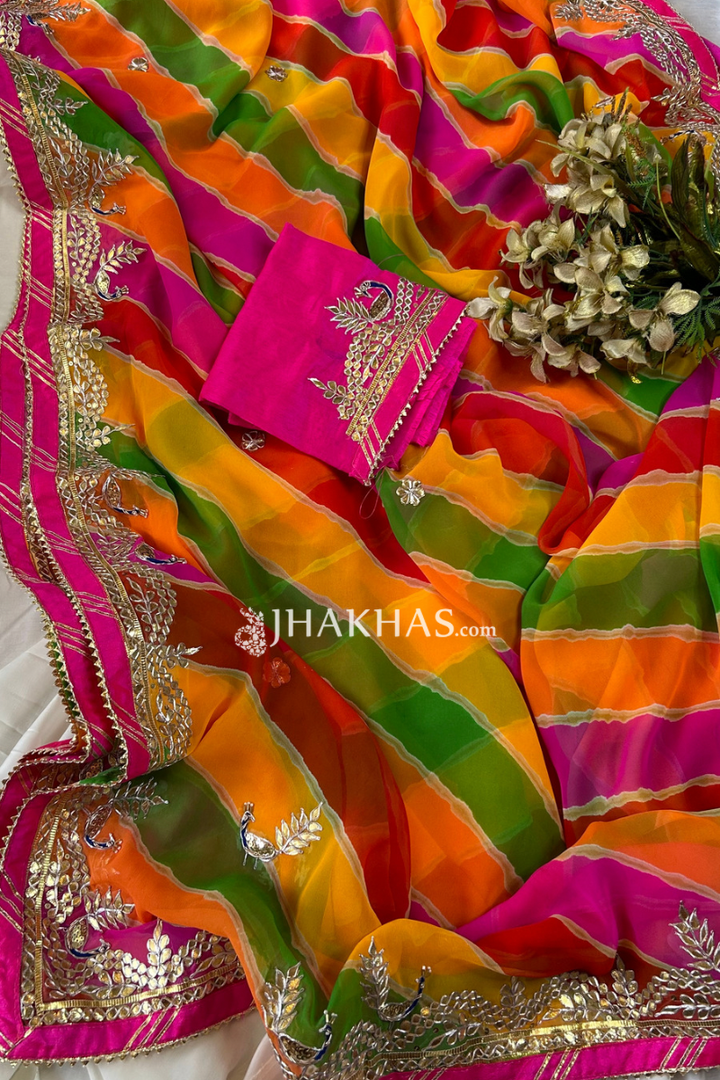 Multi Color leheriya Gota Patti Saree