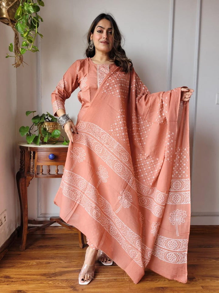 Make some space in your casual wardrobe for this cotton-colored kurti pant set with a dupatta. Comes with a Cotton bottom and a Cotton dupatta with tassels. Women can buy this set to wear for their casual wear, office wear, and weekend get-together. This Beautiful set will surely fetch you compliments for your rich sense of style.