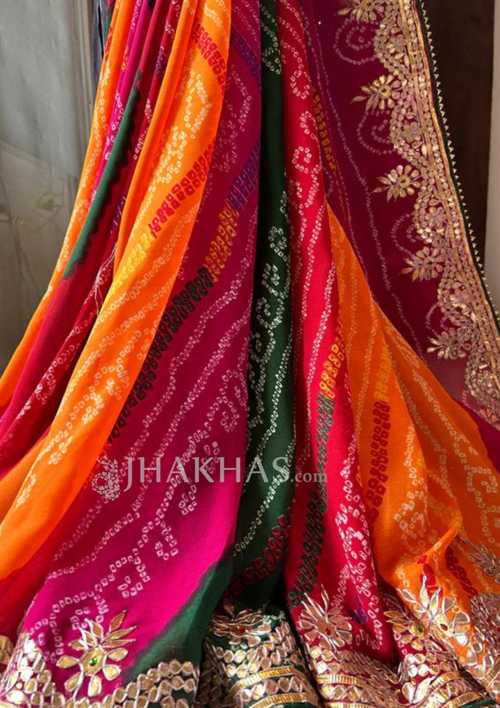 Multicolor Leheriya Bandhej Gota Patti Saree
