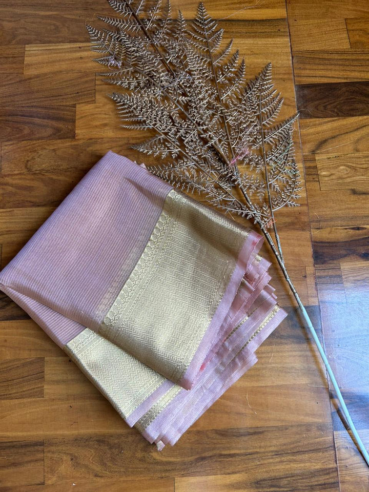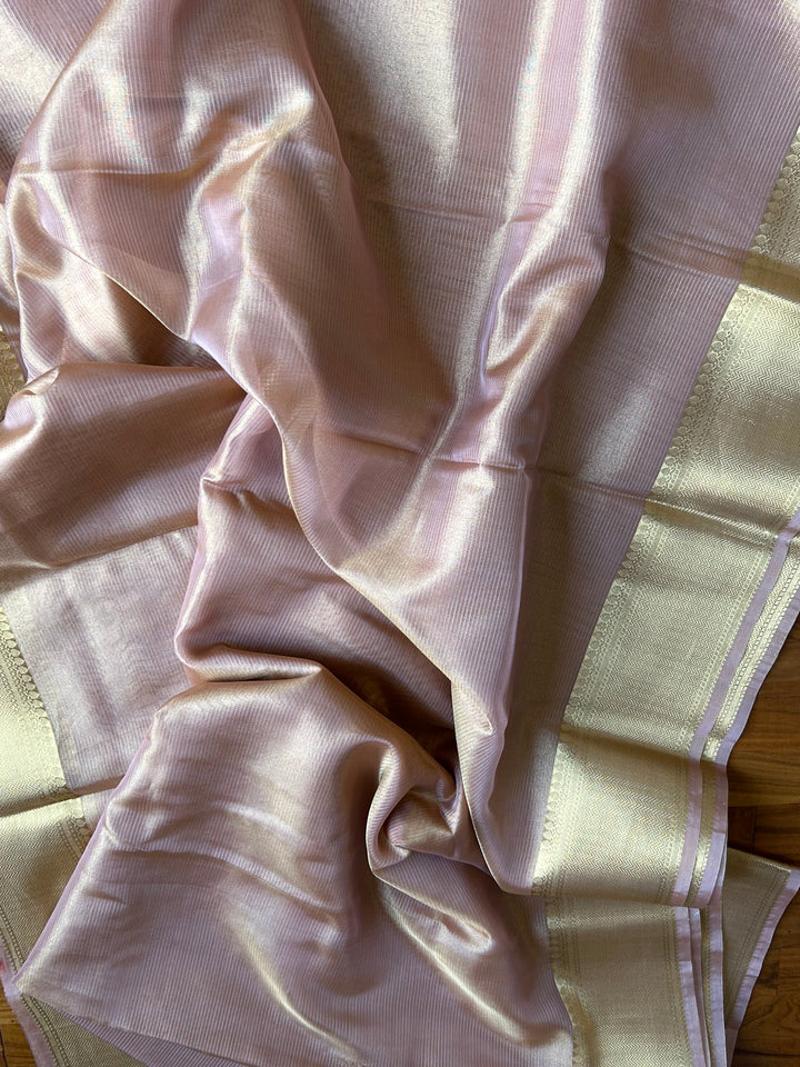 - Fancy Onion Pink Banarasi Organza Tissue Saree