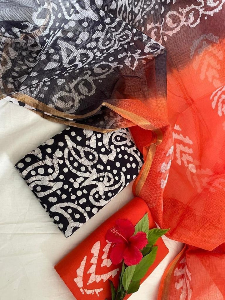 Minoo- Orange and BlackCotton Salwar Suit ( Unstitched)