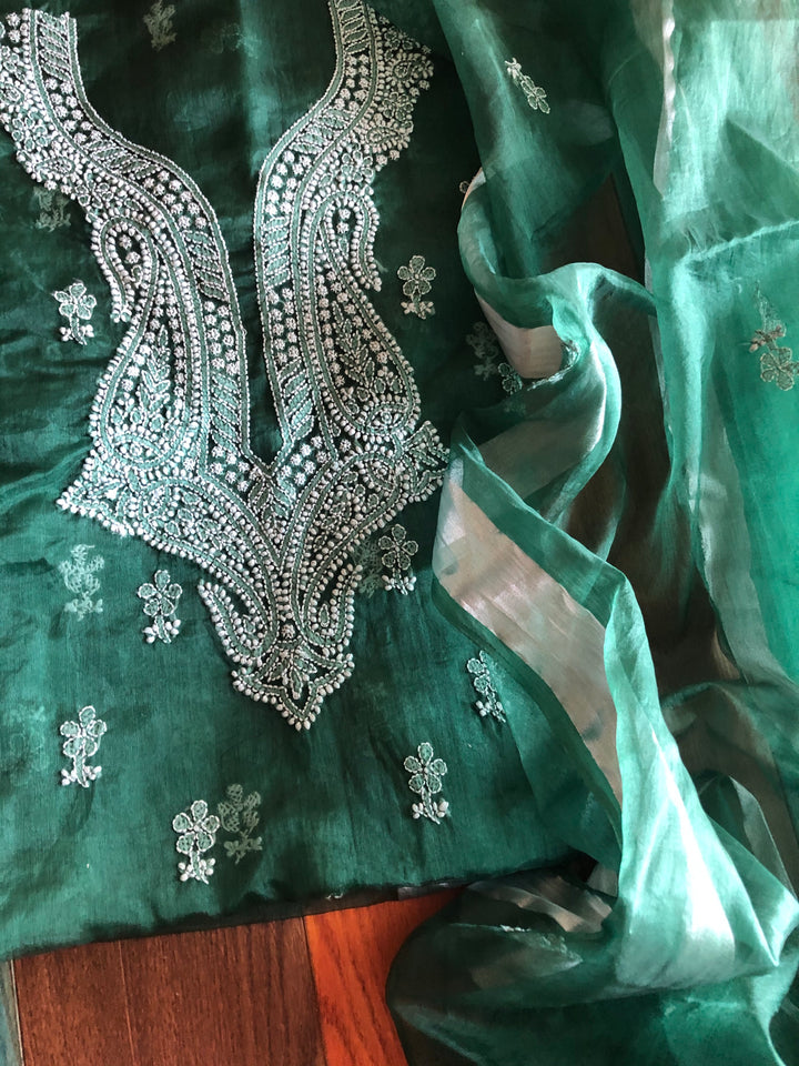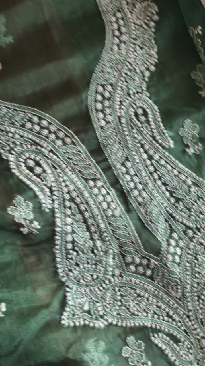 Emerald Green Chikan work Organza Salwar Kameez fabric