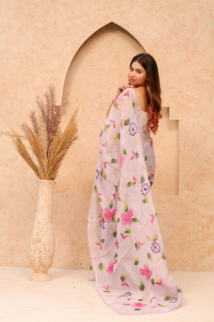 Shop now and experience the ethereal charm of Organza Hand painted Sarees - an exquisite blend of tradition and contemporary fashion!"