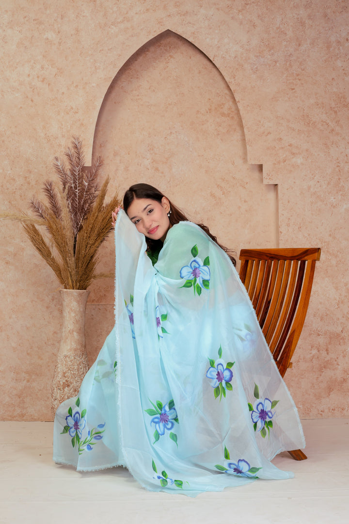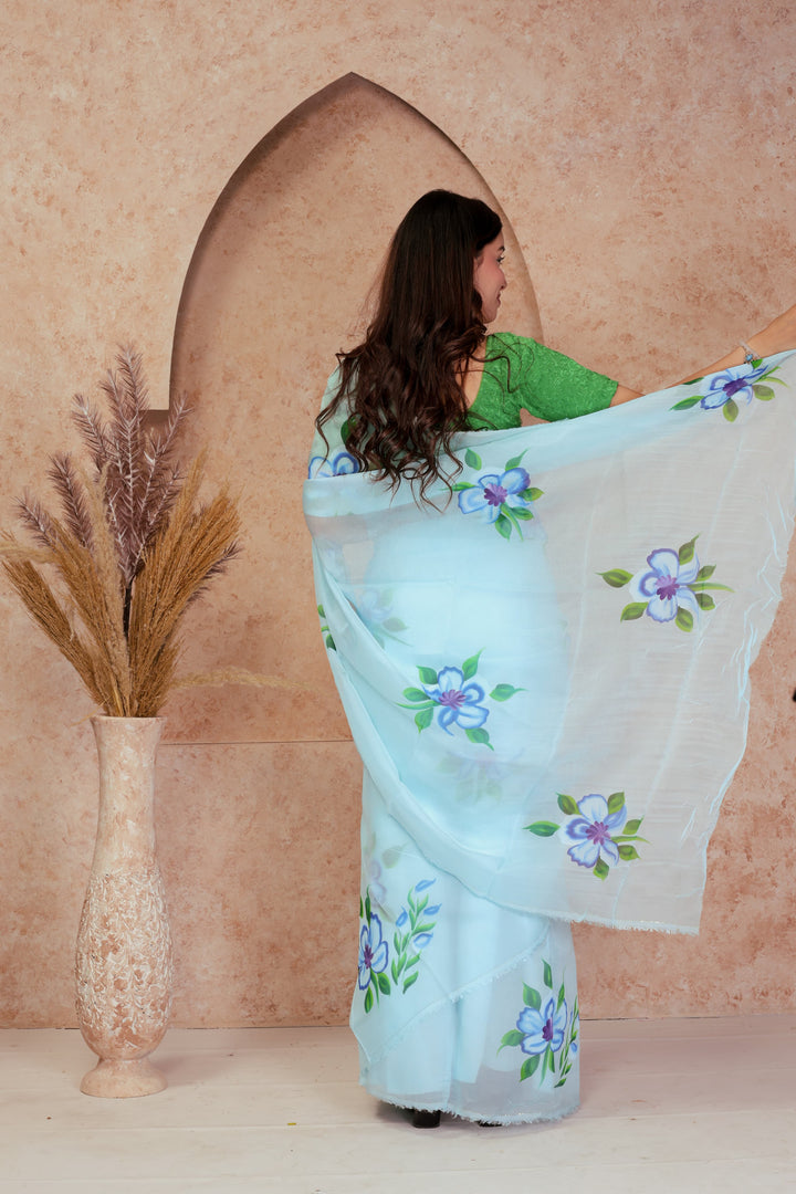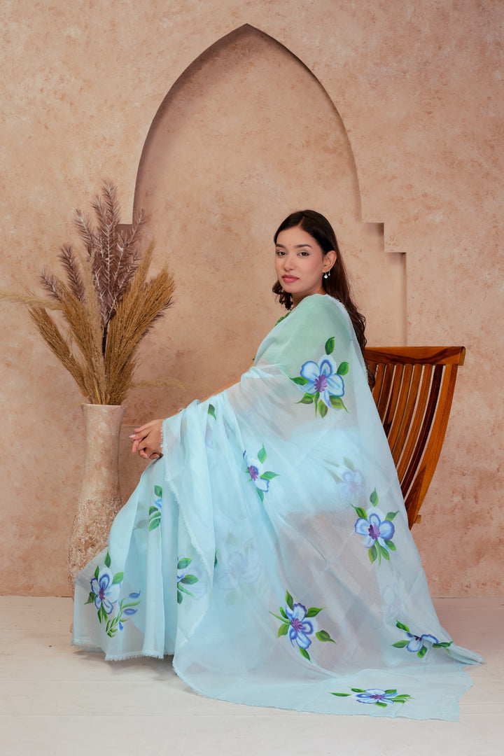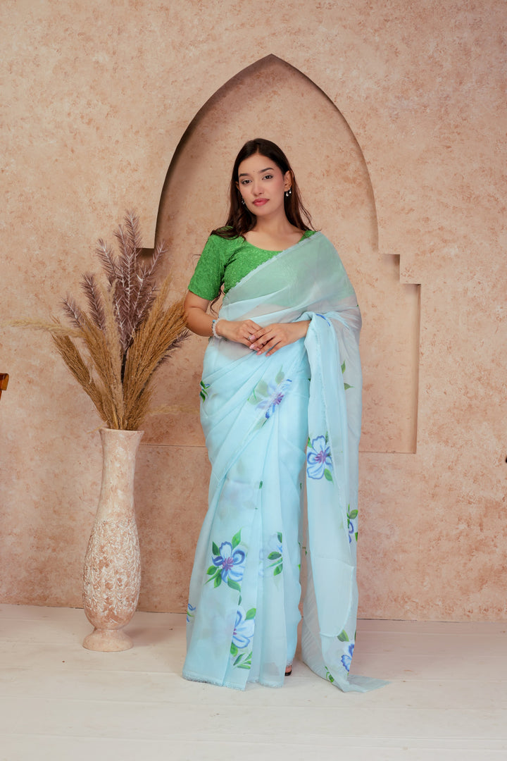 Shop now and experience the ethereal charm of Organza Hand painted Sarees - an exquisite blend of tradition and contemporary fashion!"
