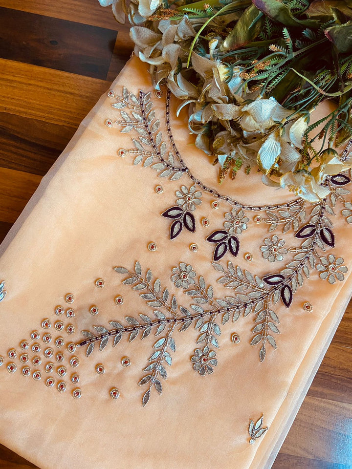 Organza Kurti In Peachis A Designer Handloom Kurti. The Pure Kurti Comes With 2.5 Meter With Gota Patti Work As Shown In Picture. This Beautiful Organza Kurti Has Beautiful Handwork All Over Neck.Shop This Pure Organza Kurti, Party Wear Kurti Online, Free Shipping And Cod Available, Shipping Worldwide.Shop This Traditional Earrings, Fancy Earrings, Party Wear Earrings Online, Free Shipping And Cod Available, Shipping Worldwide.