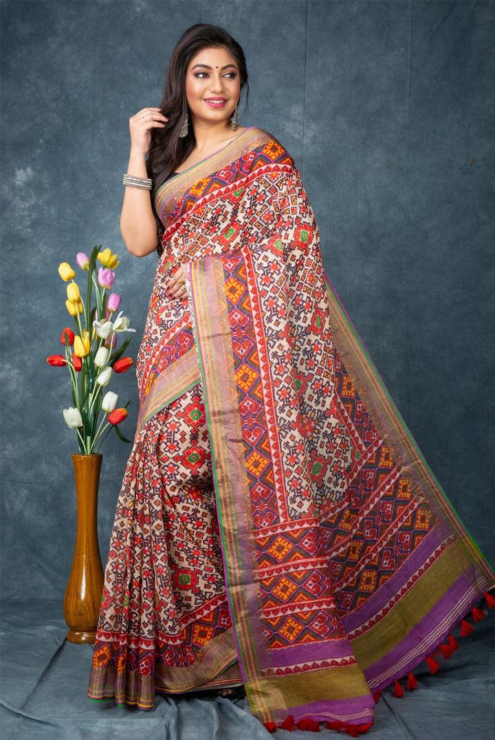Patola look pure linen saree with blouse