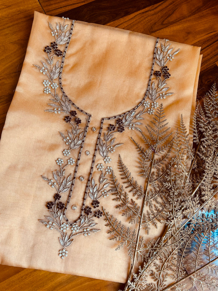 Add To Your Ethnic Collection This Unstitched Ggolden Cream Gota Patti Organza Kurti With. This Gorgeous Unstitched Kurti is Adorned With Stunning Gota Patti Work On Neckline. Get This Unstitched Kurti Stitched According To Your Fit, Style And Comfort.