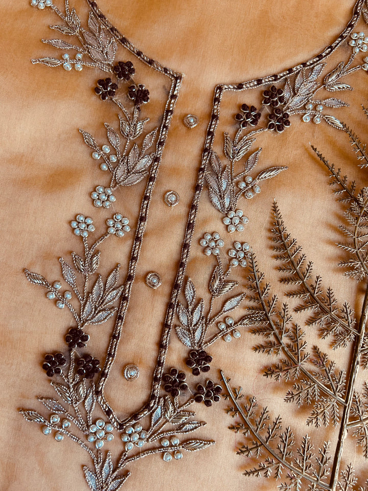 Golden Cream Gota Patti Organza Kurti