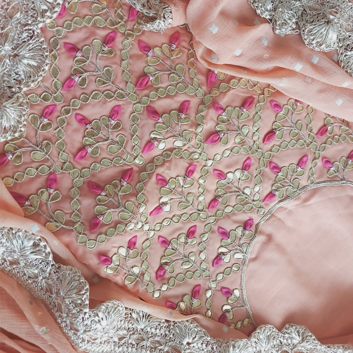 Beautiful Peach Gota Patti Salwar Suitsalwar Kameez Online Uk,Pujabi Salwar Suits. Every Suit Is 2.5Mtr Top Length And 2.5 Mtr Bottom And 2.5 Mtr Dupatta Length, Shop Exclusive Collection Of Designer Salwar Suit At Jhakhas.Com. Free Shipping And Cod Available, Shipping Worldwide.