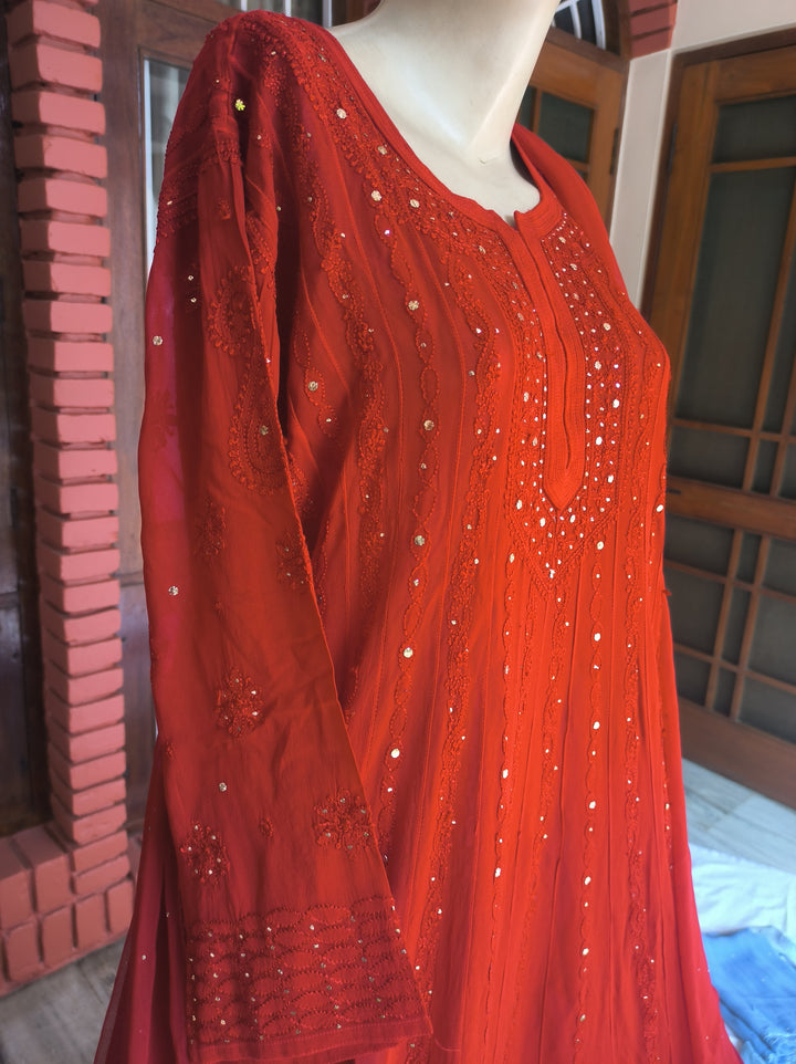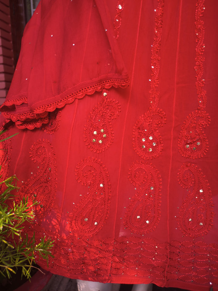 “ishq” Red Lucknowi Chikankari Anarkali Gota Patti Salwar Suit (Semi stitched)