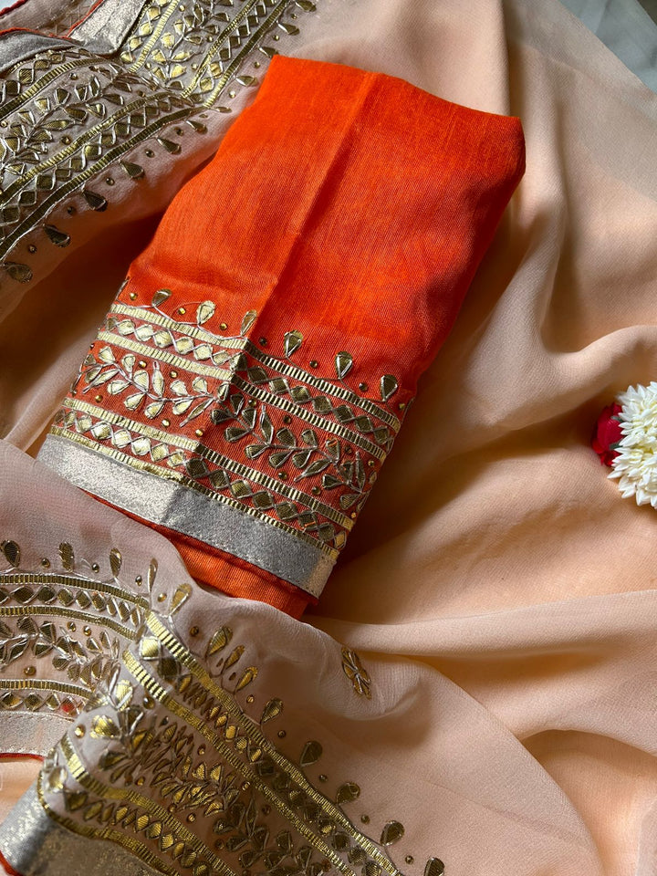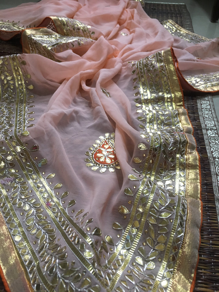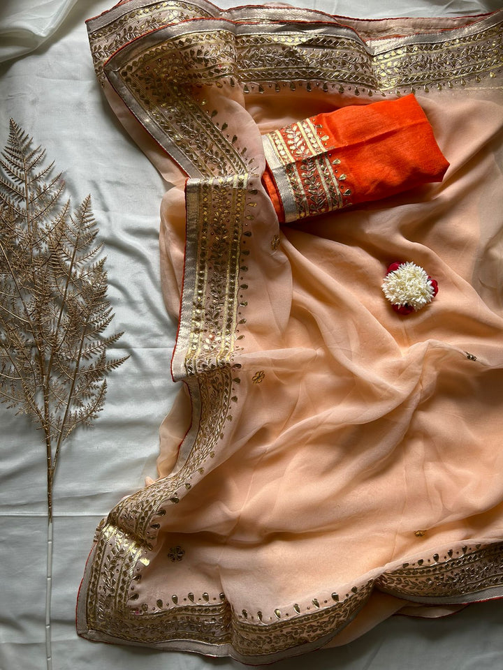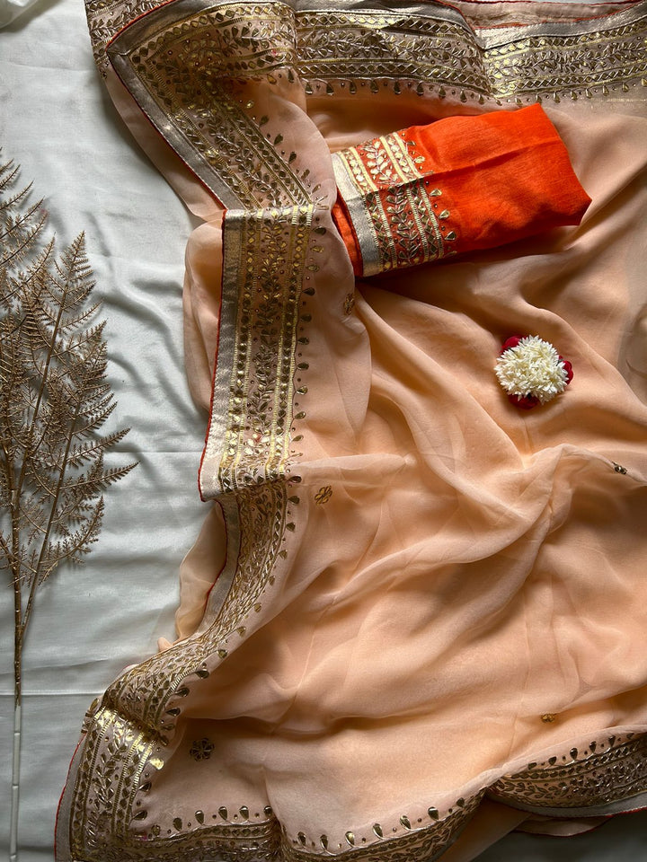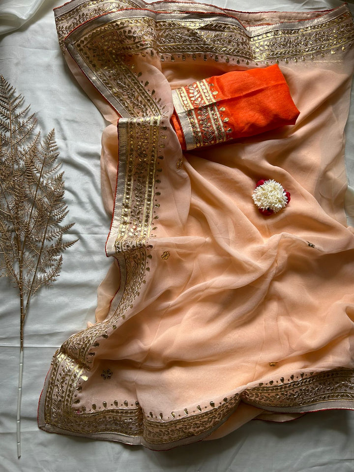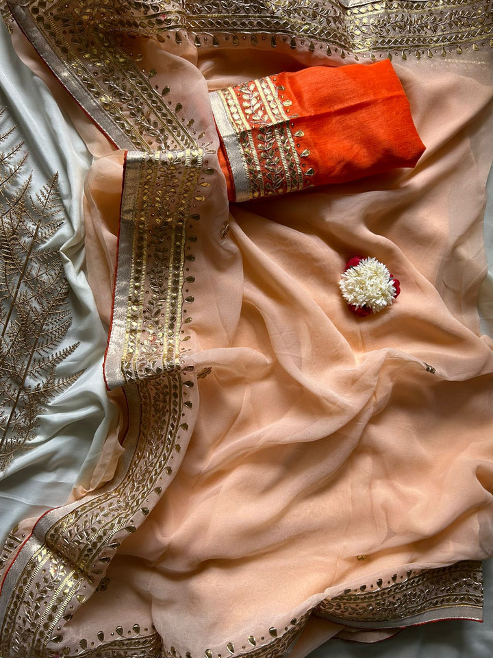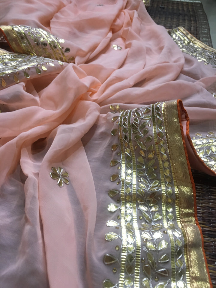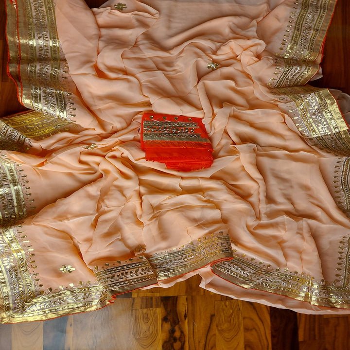 Beautiful Blush Peach Gota Patti Georgette Saree