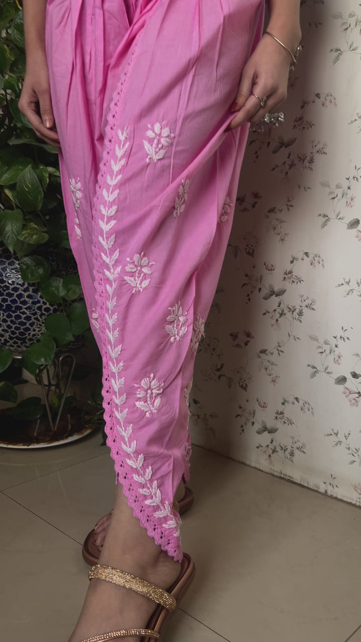 Styling Tip: Pair a Chikankari dhoti with a sleek fitted blouse or crop top for a modern and chic look. Add statement earrings for flair.