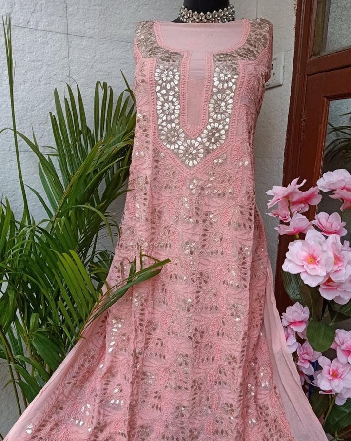 - Full chikankari gota patti jaal work on front and boota work on back, the top features a gorgeous heavy neckline