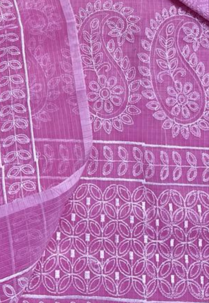 Ratnagandha- Featuring This Elegantly Designed Pink Embroided Cotton Kota Doria Suit Fabric With Dupatta. The Pink Cotton Kota Doria Suit Embellished With White Thread Jaal Embroidery All Over. To Complete Your Look It Comes With Matching Cotton Bottom And Matching Dupatta With Motifs All Over. Shop Your Pink Cotton Kota Doria Suit With Matching Dupatta From Our Webstores And Avail Free Shipping.