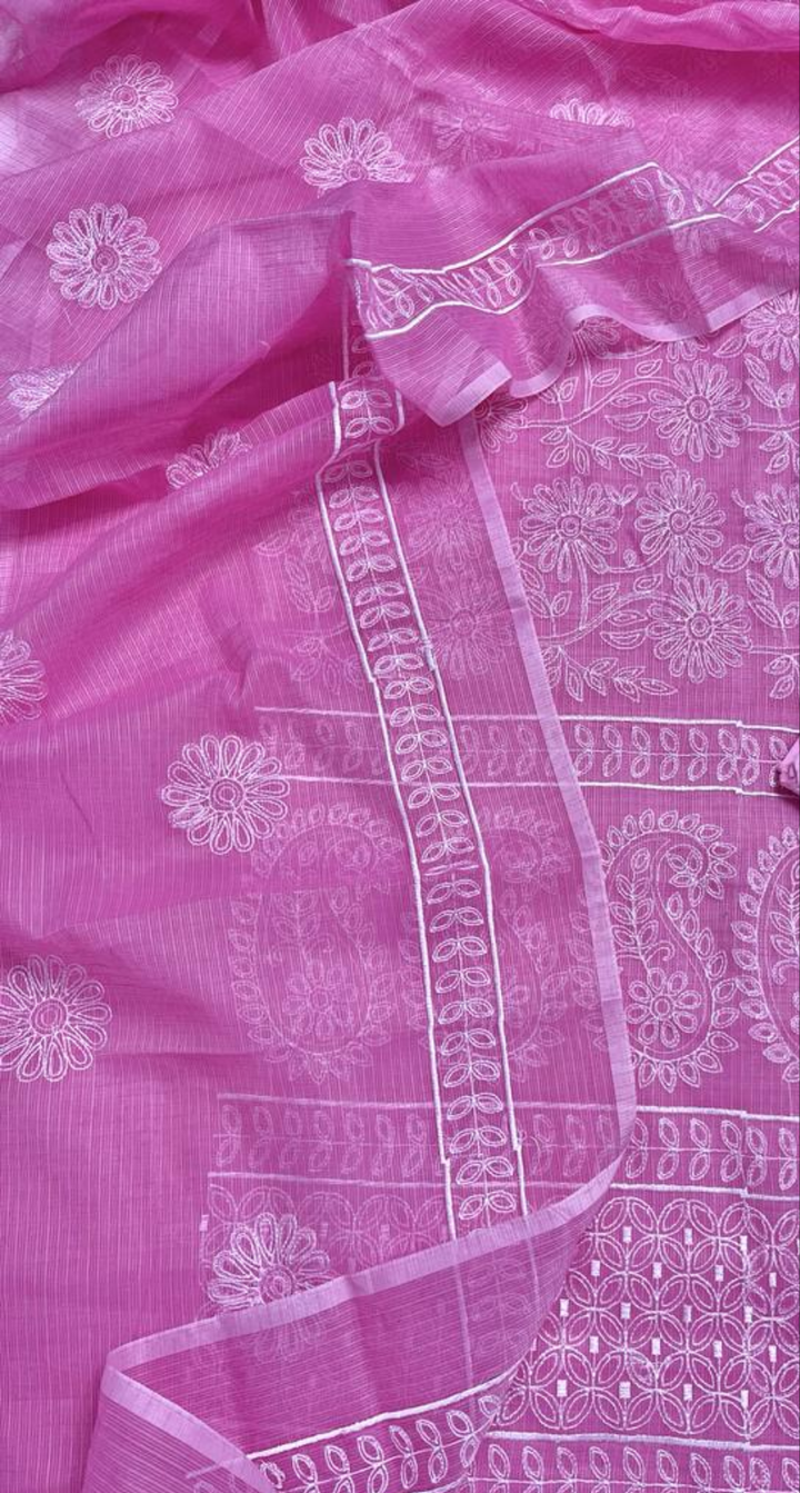 Ratnagandha- Pink Embroided Cotton Kota Doria Suit Fabric With Dupatta (unstitched)