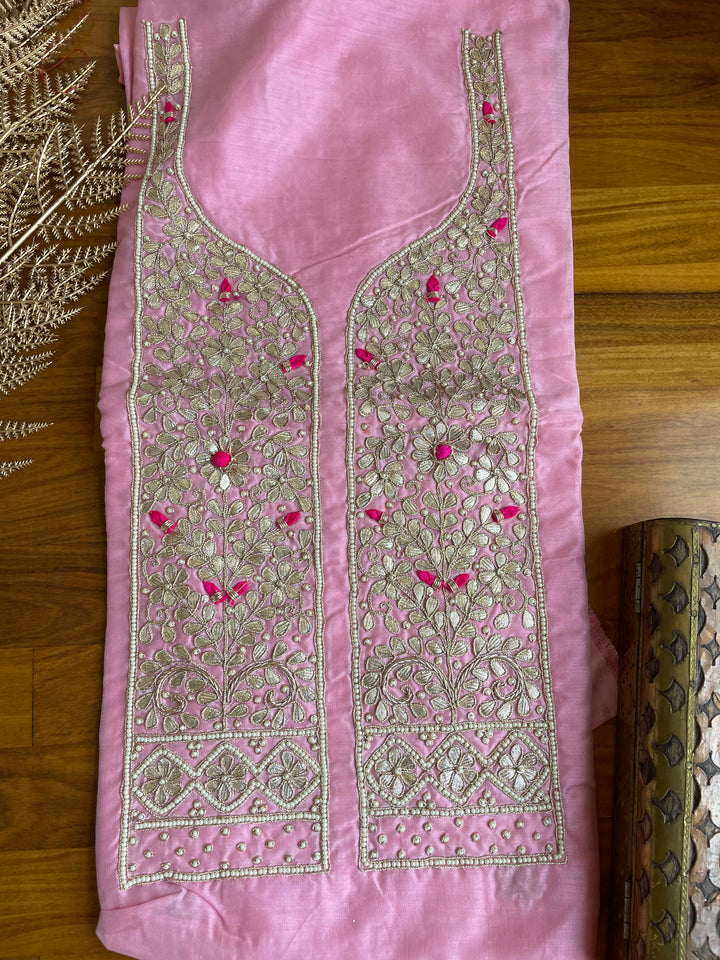 Make A Stunning Style Statement As You Head Out Wearing This Chnaderi Pink Gota Patti Kurti Makes A Stylish Addition To Your Traditional Closet. This Pink Gota Patti Kurti Is Adorned With Beautiful Gota Patti Work On Neckline.