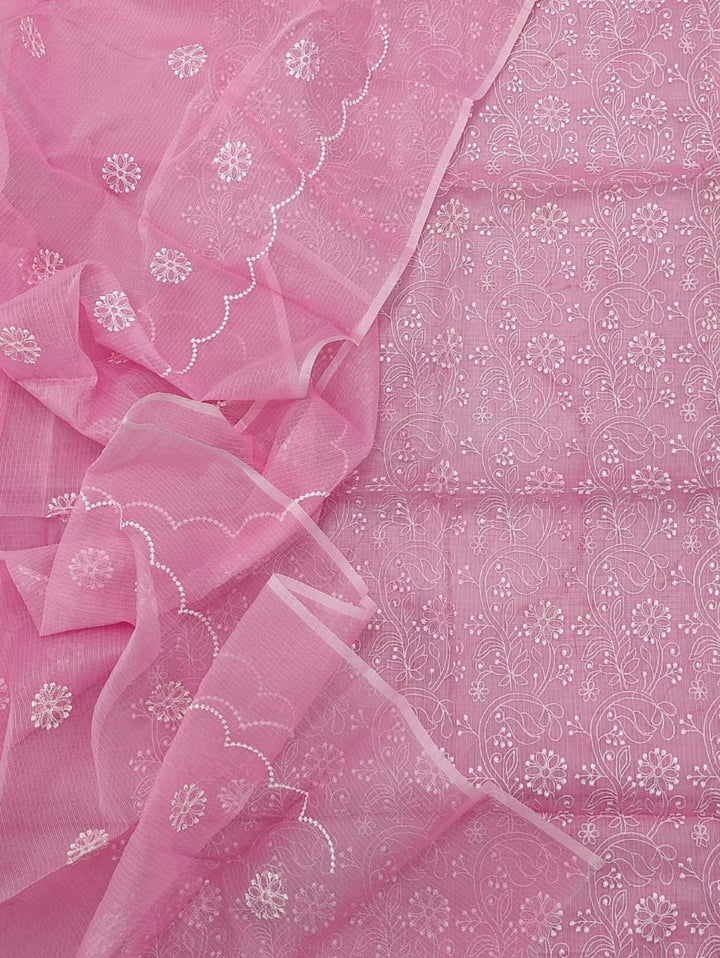 Gulbakavali- This Pink Cotton Kota Doria Salwar Suit With Matching Dupatta Will Surely Lend You The Look. The Pink Kota Doria Kurta Features Embroidery In White Thread All Over. The Matching Dupatta Has Motifs All Over The Border. Fabric Is Gentle To Skin And Durable As Well. One Of This Kind Is A Must For Your Wardrobe. Pair It With Plazo And Mojari For A Perfect Look. Buy Pink Hand Embroided Kota Doria Suit From Our Online Store Jhakhas.Com
