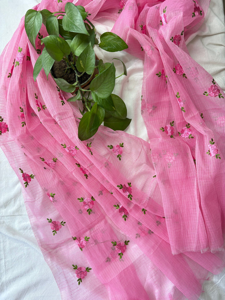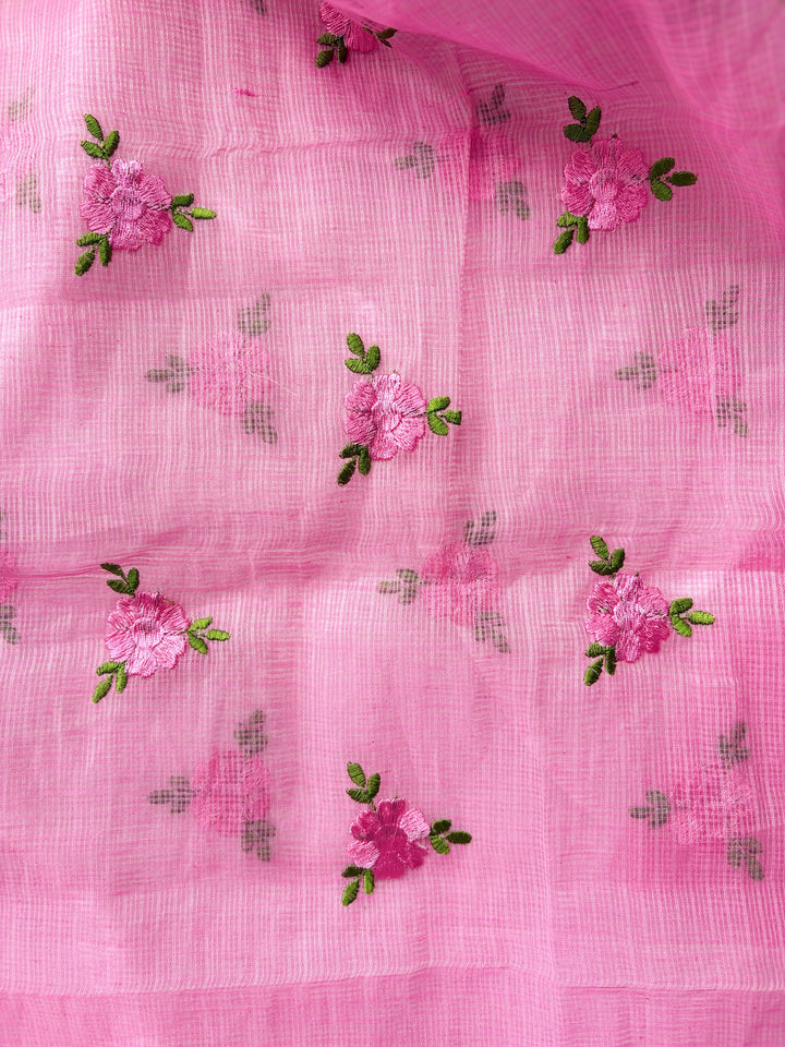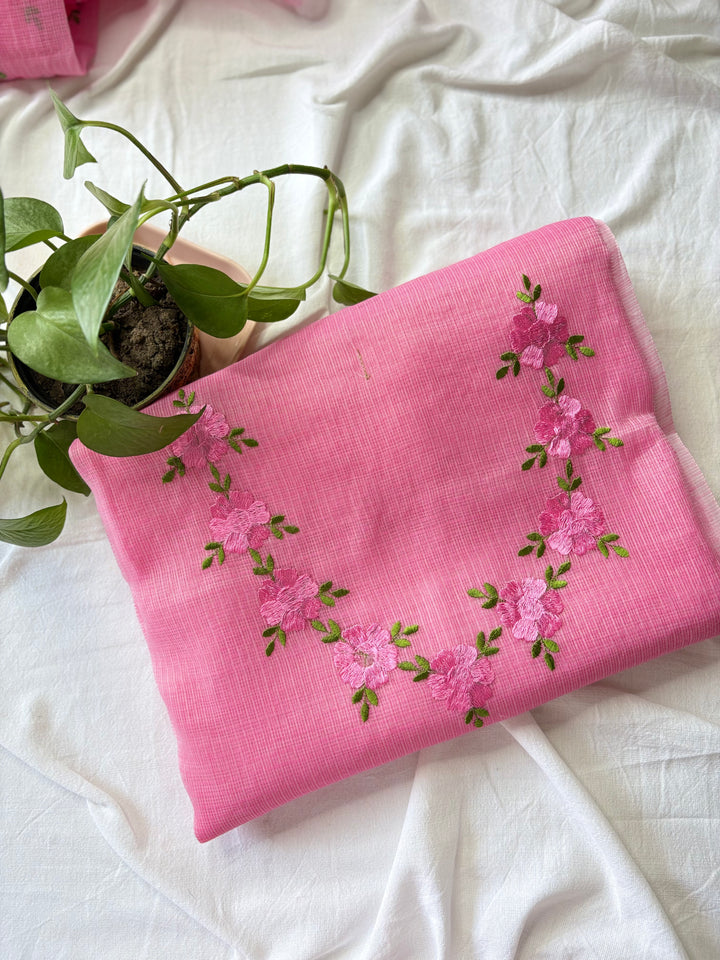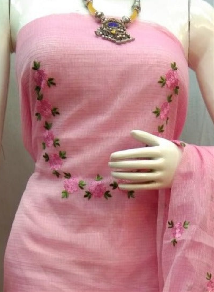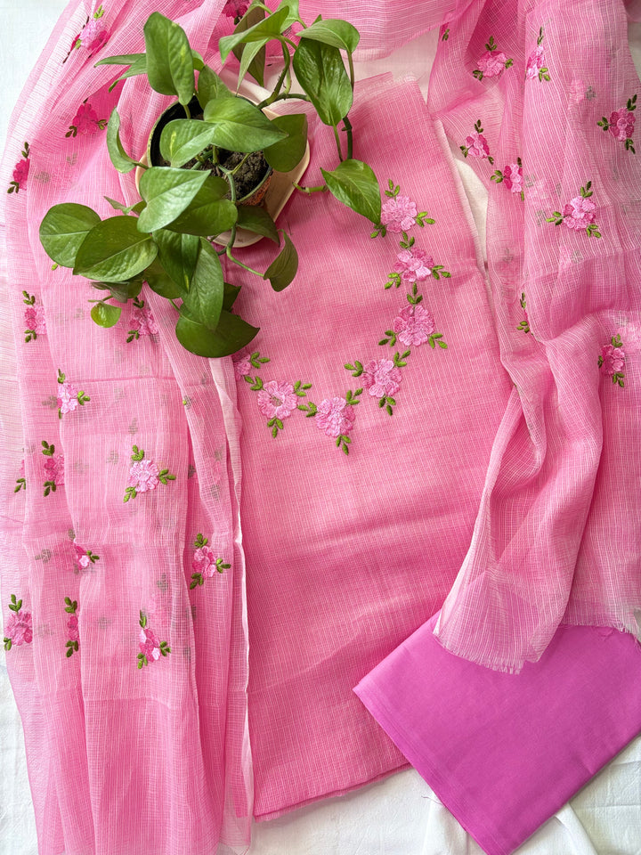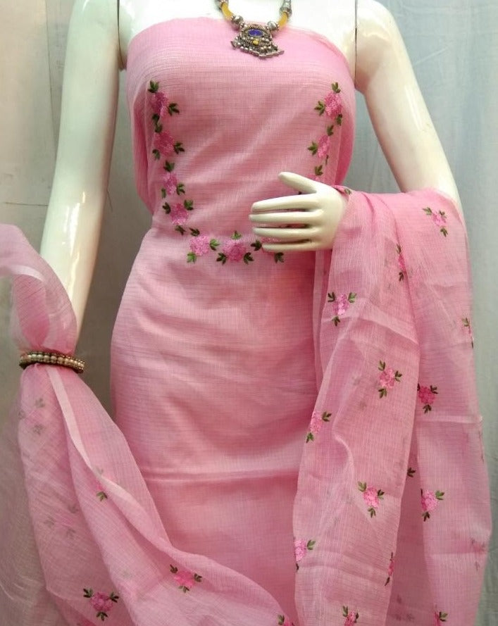 Beautiful Kota Doriya Embroidery Work Suit In Pink Comes With 3 Pieces Suit 2.5 Mtr Top In Kota ,2.5 Mtr Dupatta In Kota,2.5 Mtr Bottom In Cotton. You Can Carry Beautiful Natural Stone Earrings With It. This Kota Doria Suit Has Beautiful Work Done By Our Karigars.,Free Shipping And Cod Available, Shipping Worldwide.
