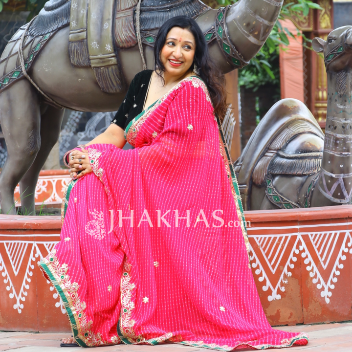 From The Land Of Rajasthan We Bring To You This Exquisite Hand Crafted Multi Color Georgette Leheriya Gota Patti Work Saree. This Multi Color Gota Patti Saree With A Unique Gota Patti Work Make It A Must Have For Your Closet. Shop More Leheriya , Mothra And Bandhej Gota Patti Sarees At Jhakhas.Com.