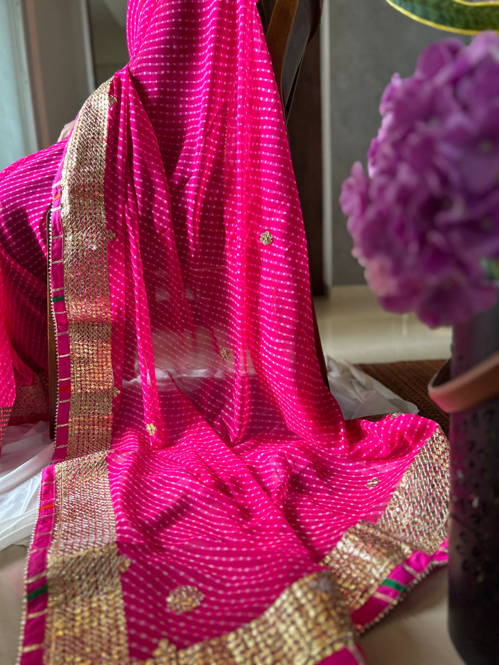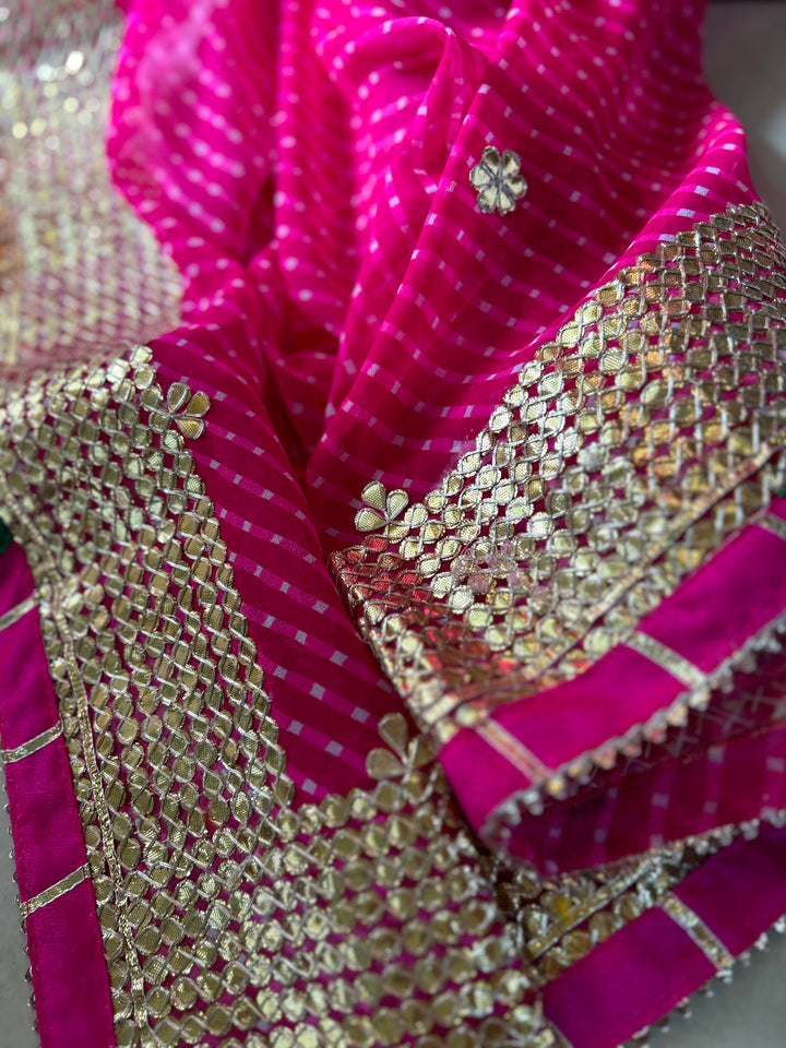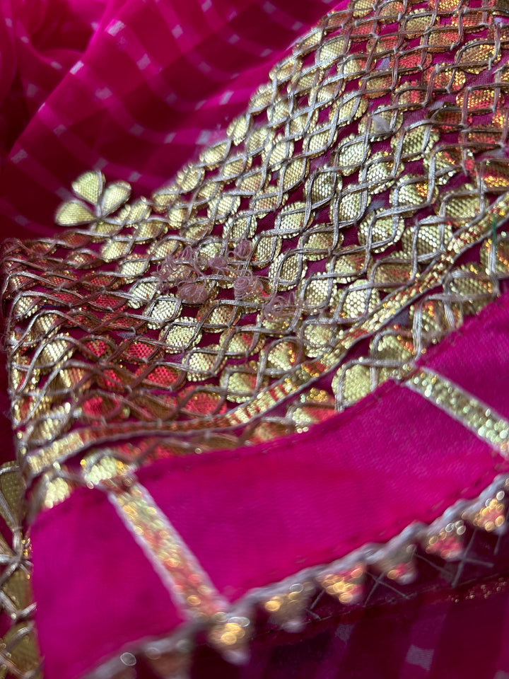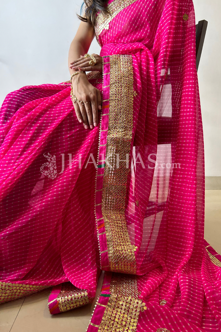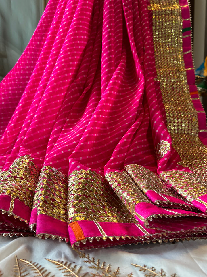 From The Land Of Rajasthan We Bring To You This Exquisite Hand Crafted Multi Color Georgette Leheriya / Mothra Gota Patti Work Saree. This Multi Color Gota Patti Saree With A Unique Gota Patti Work Make It A Must Have For Your Closet. Shop More Leheriya , Mothra And Bandhej Gota Patti Sarees At Jhakhas.Com.