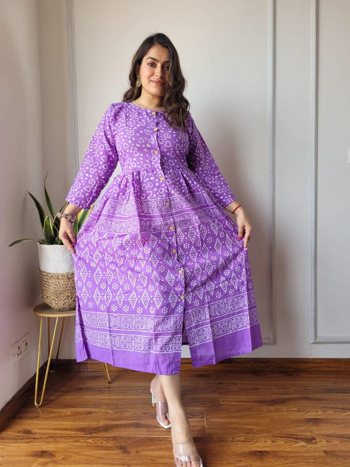 Our Bagru dress is Hand crafted On Cotton Fabric Is a Must Buy For Summer Season. It has Round Neck with Elbow Sleeves And Frill Design in Bottom. This Beautiful Cotton Dress Is A Perfect For Day Outing, Brunches, or picnic. The Length Of the Dress is 45inchs.