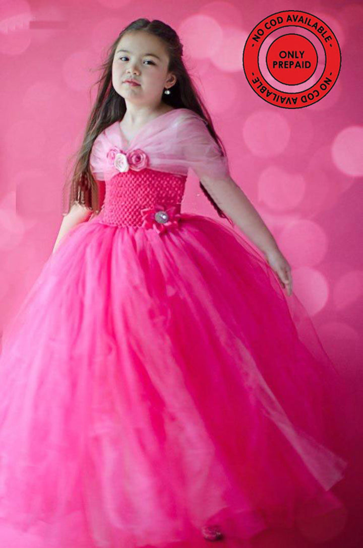Pretty Pink Tutu Dress For Girls Are Customized On Demand.This Dress Has Light Pink Net On Shoulder With 3 Big Flowers One Of White Color In Middle And Two Of Pink Color On Either Side.It Also Has One Huge Pink Flower On Left Side Of This Gown. Fabric Of This Gown Has Soft Net Tulle And A Crochet On Top.The Dress Can Be Customized For All Ages I.E. 0 To 12 Years. The Fabric Used In This Floor Length Kids Gown Is Very Light Weight And Easy To Handle.
