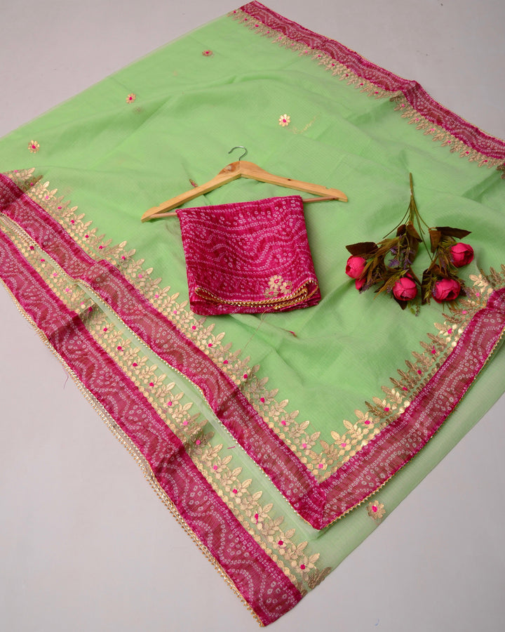 Shaila- Pista Green Kota Doria Gota Patti Saree