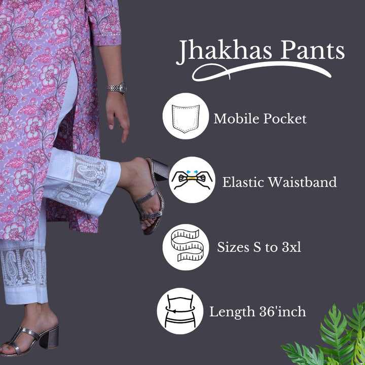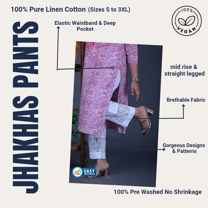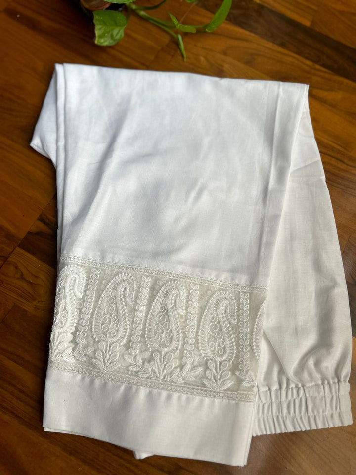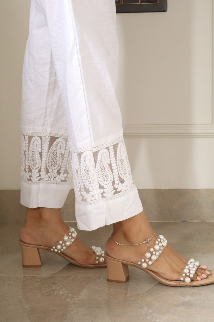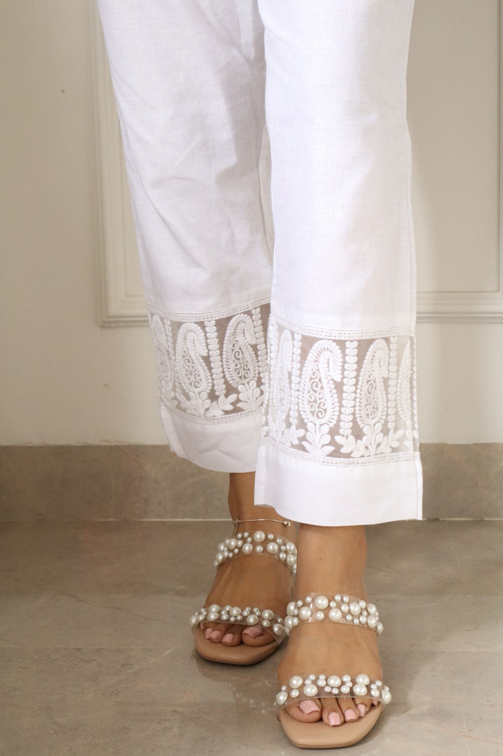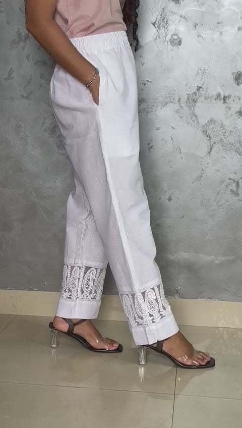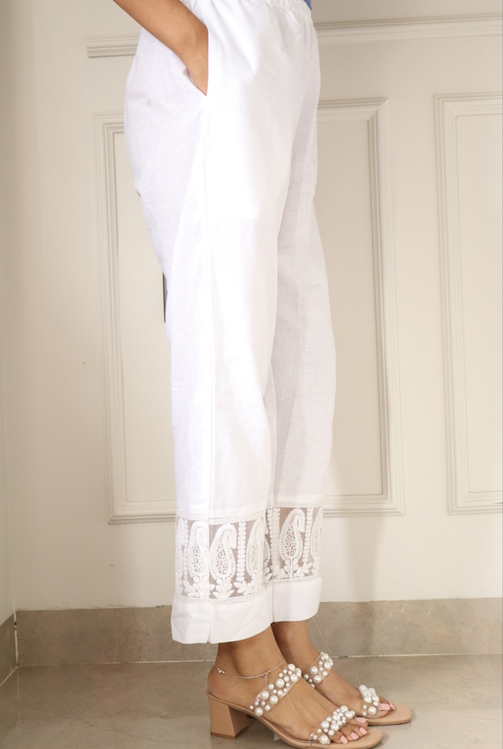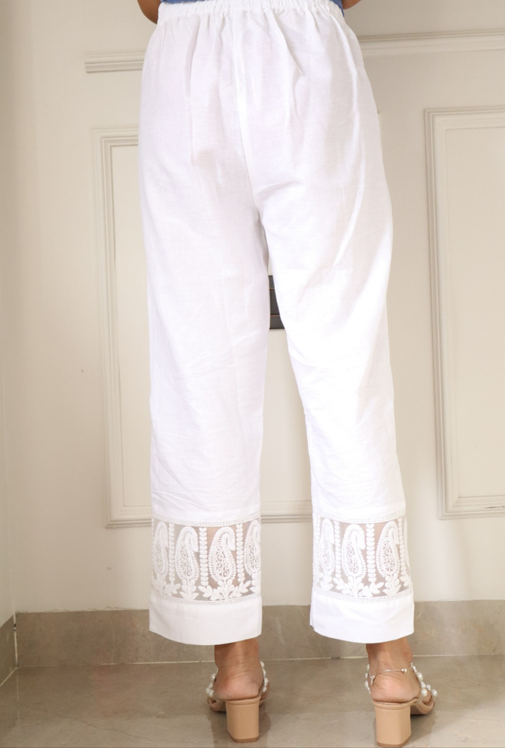 Premika Premium Cotton White Straight Lace Work Pant For Women